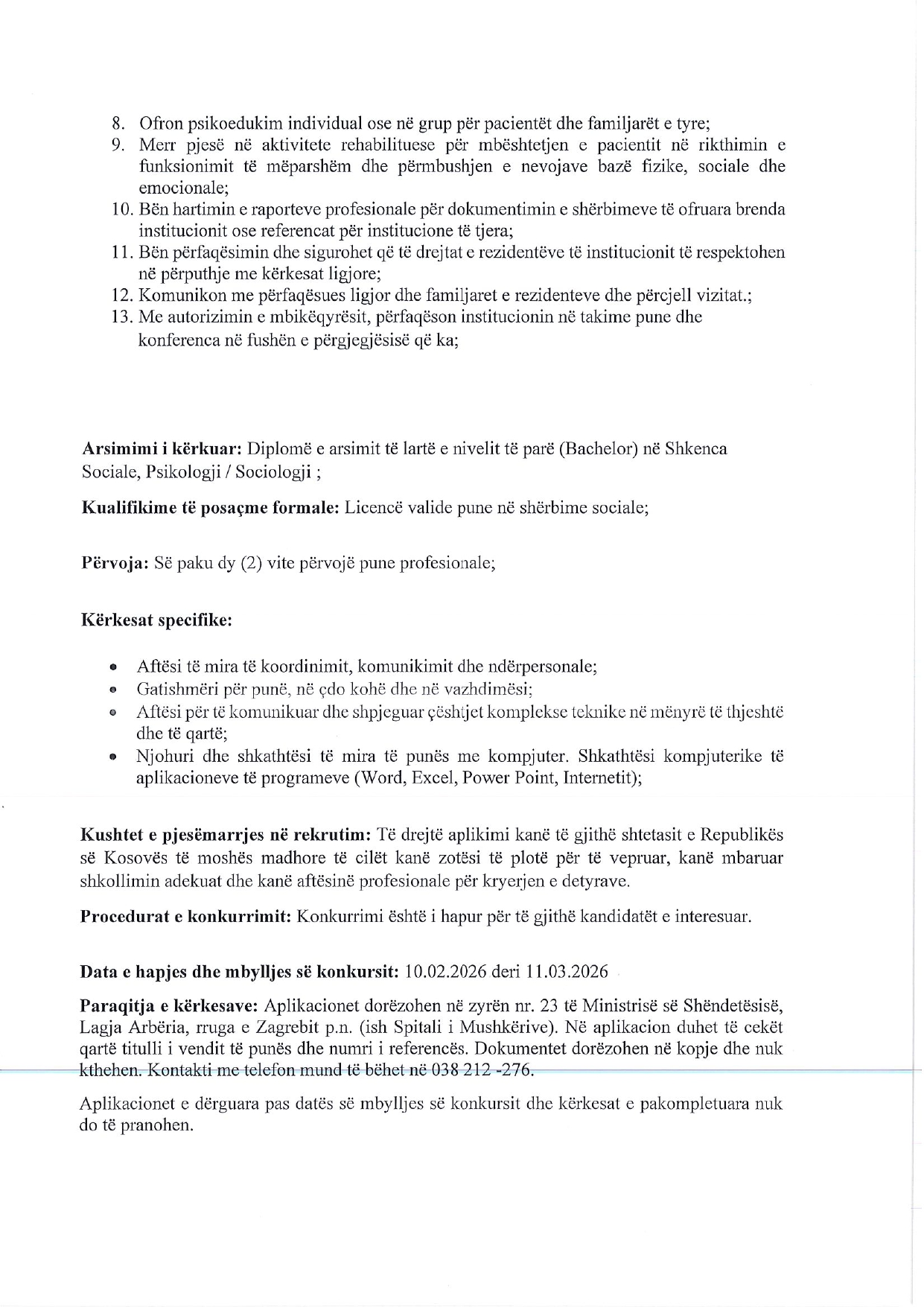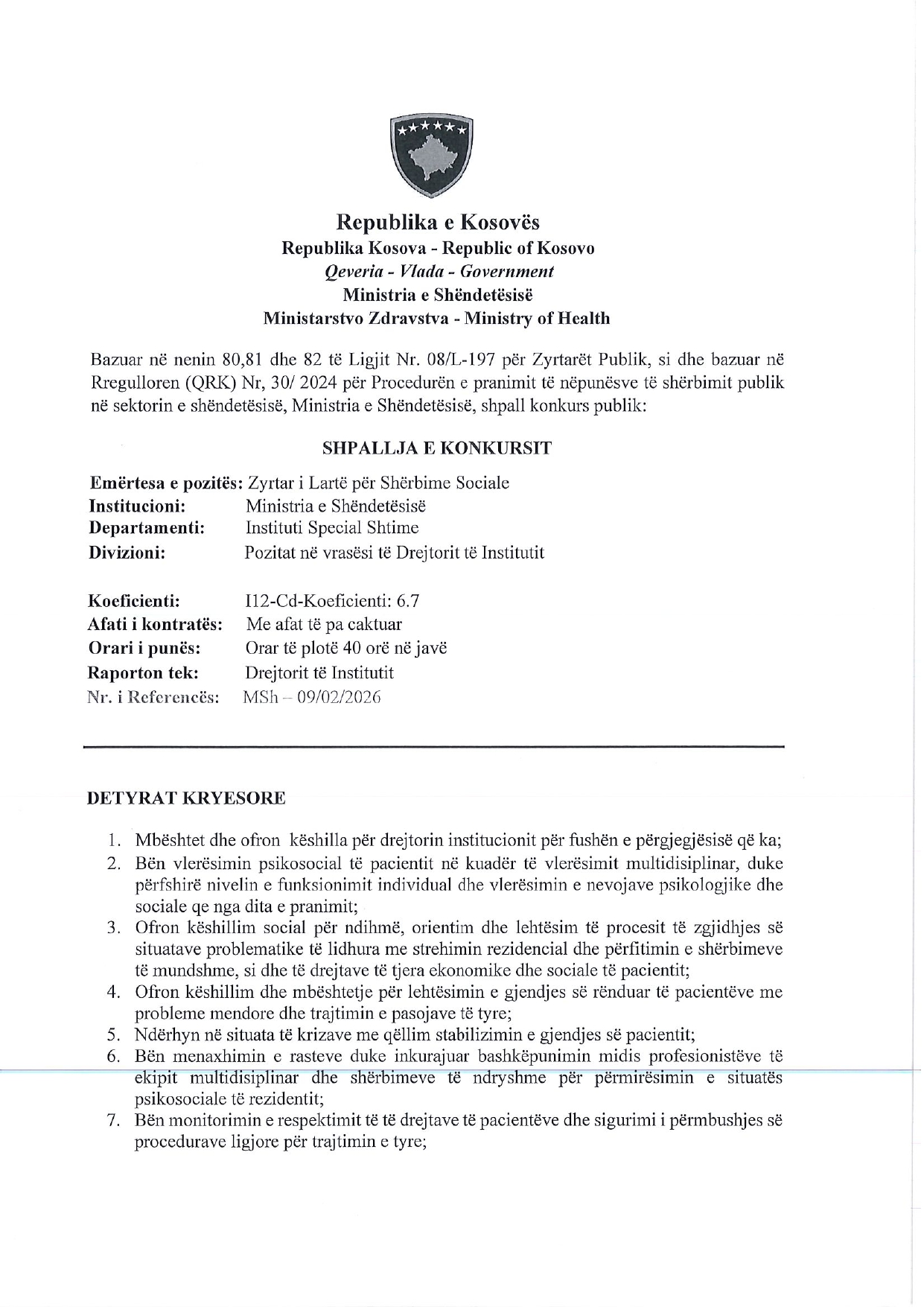 Udhëheqës i Sektorit për Kujdesin nda...