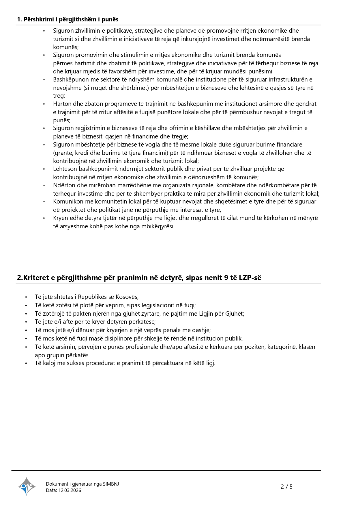 Udhëheqës i Sektorit të Ekonomisë