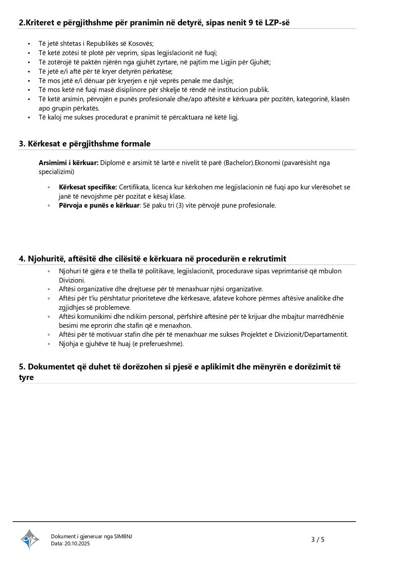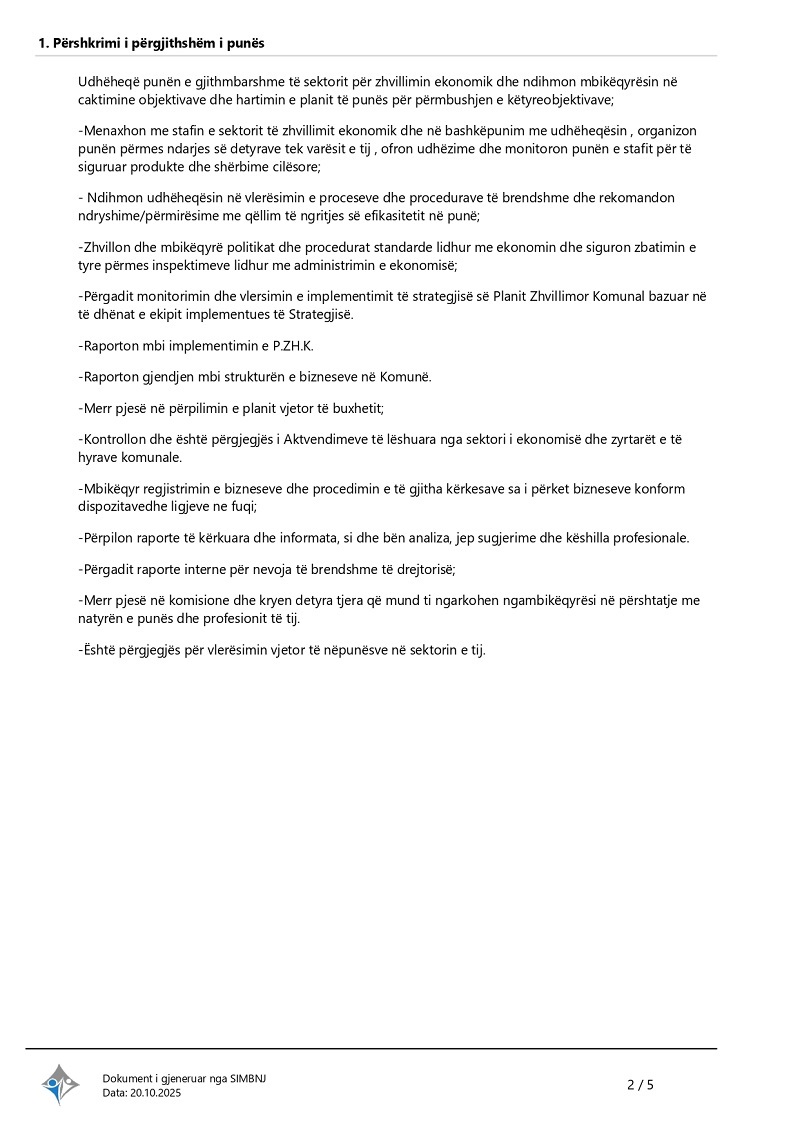 Udhëheqës i sektorit të ekonomisë