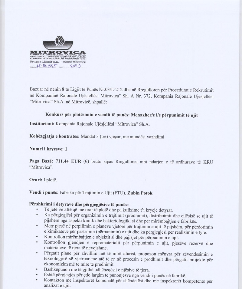 📄 Linku për aplikacionin zyrtar: www.kru-mitrovica.com/konkurset