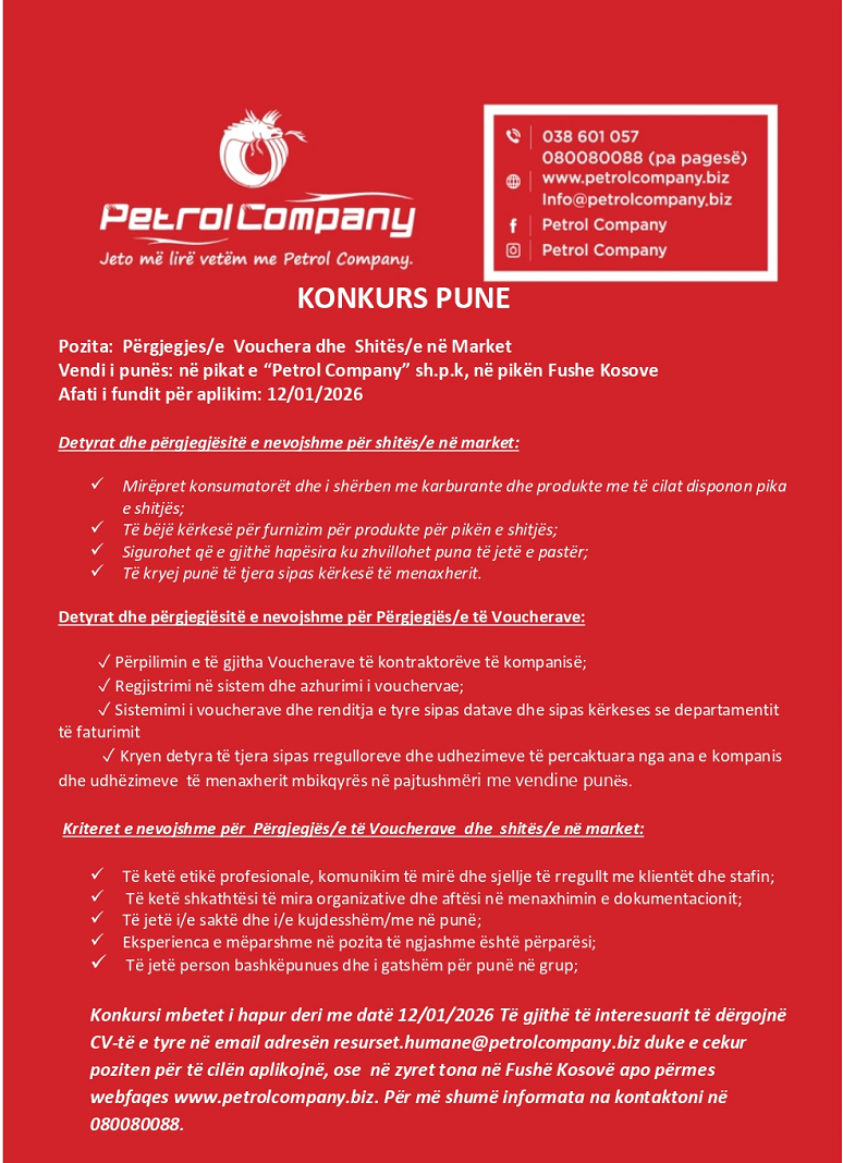 Përgjegjës/e Vouchera, Shitës/e në Ma...