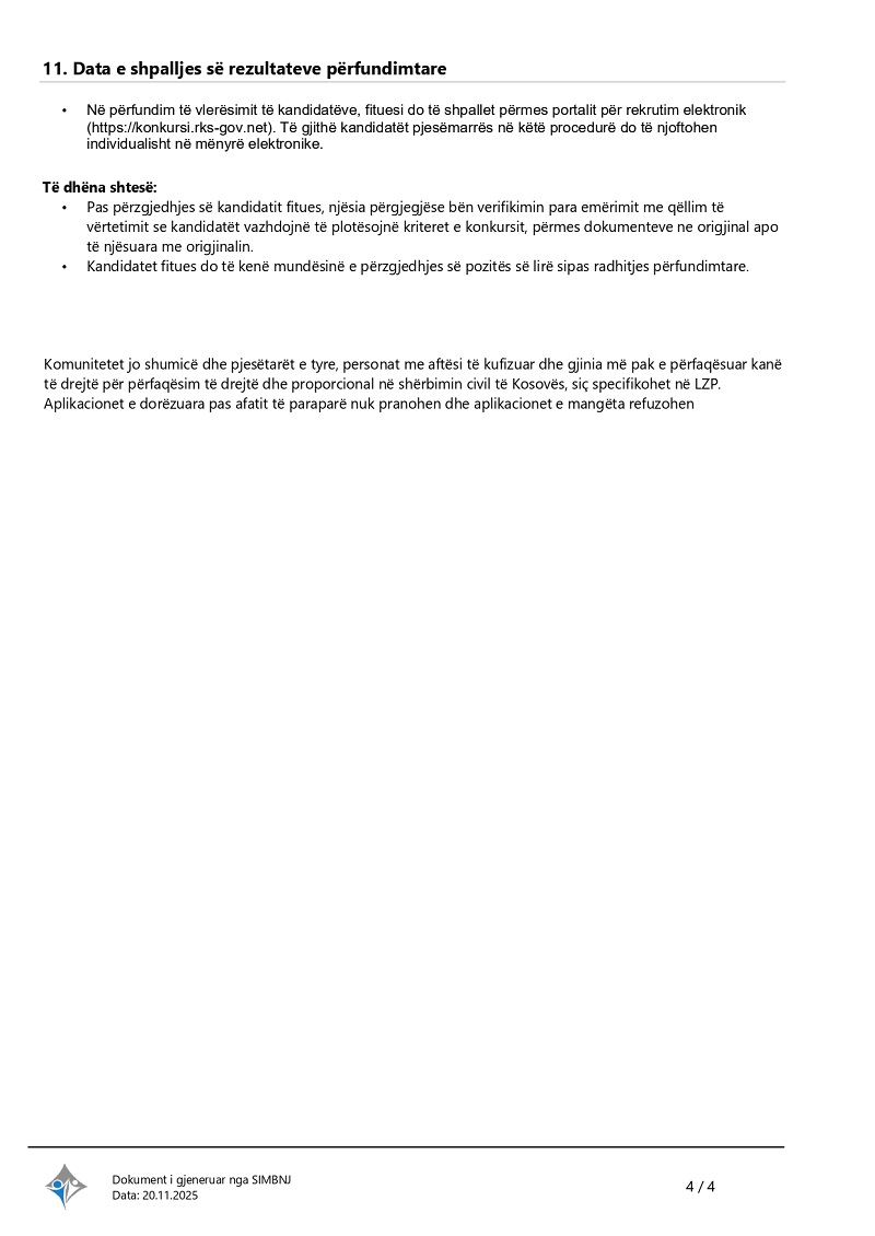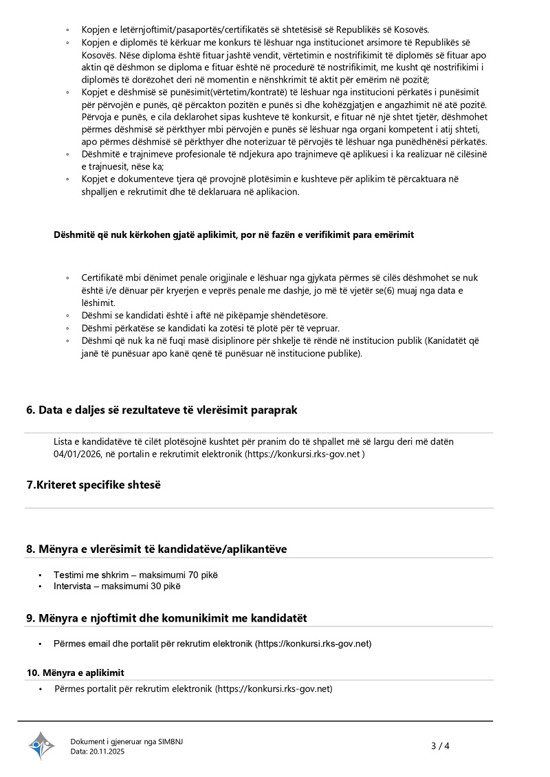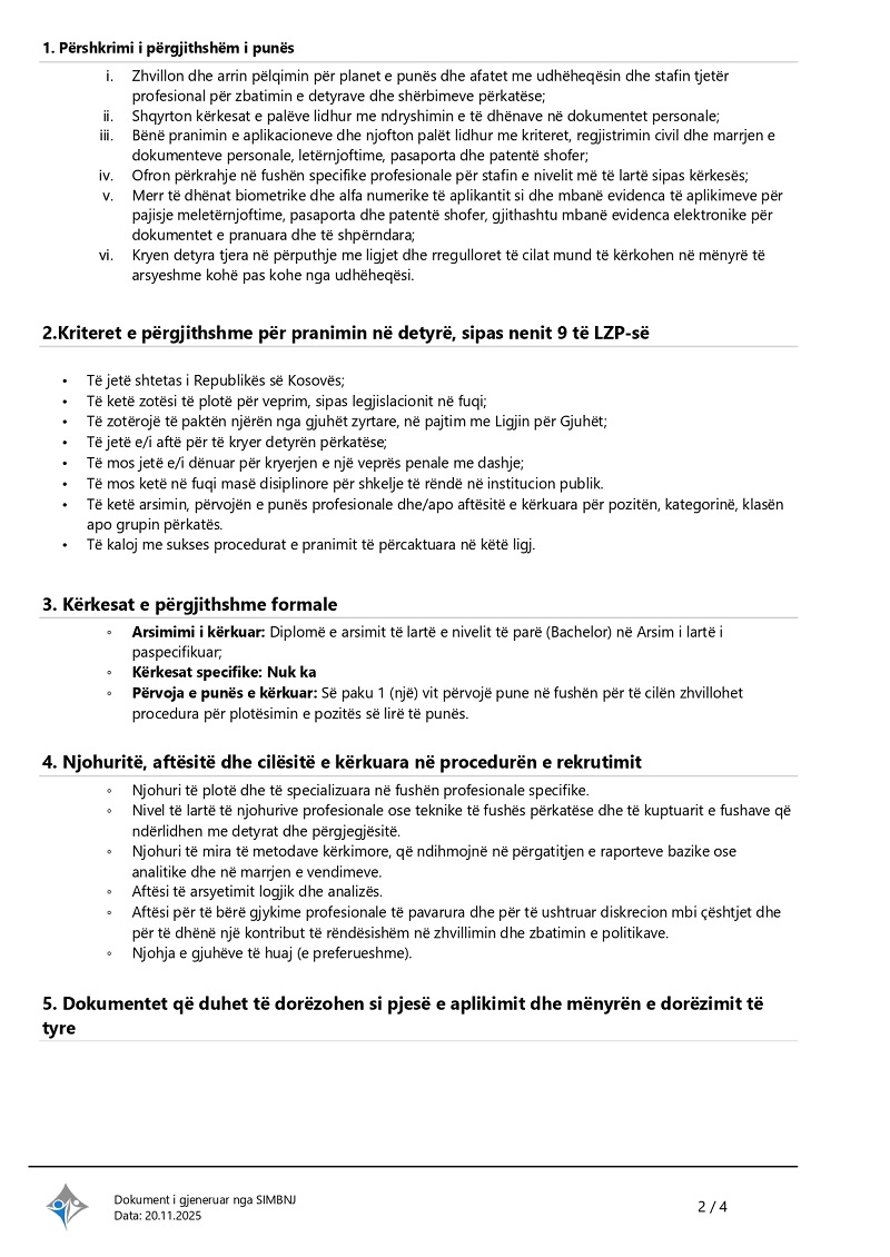 Specialist/e i/e Raportimit dhe Kontr...