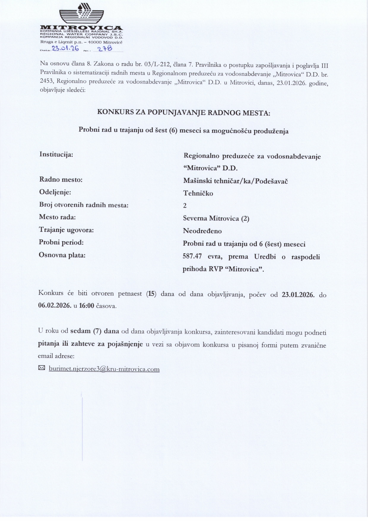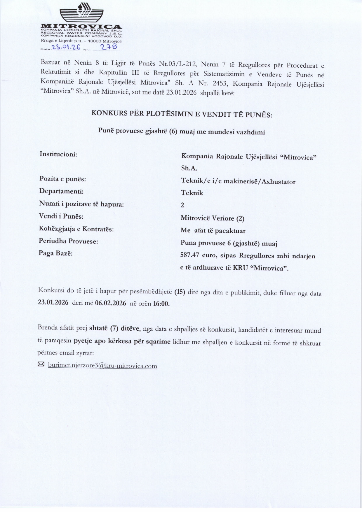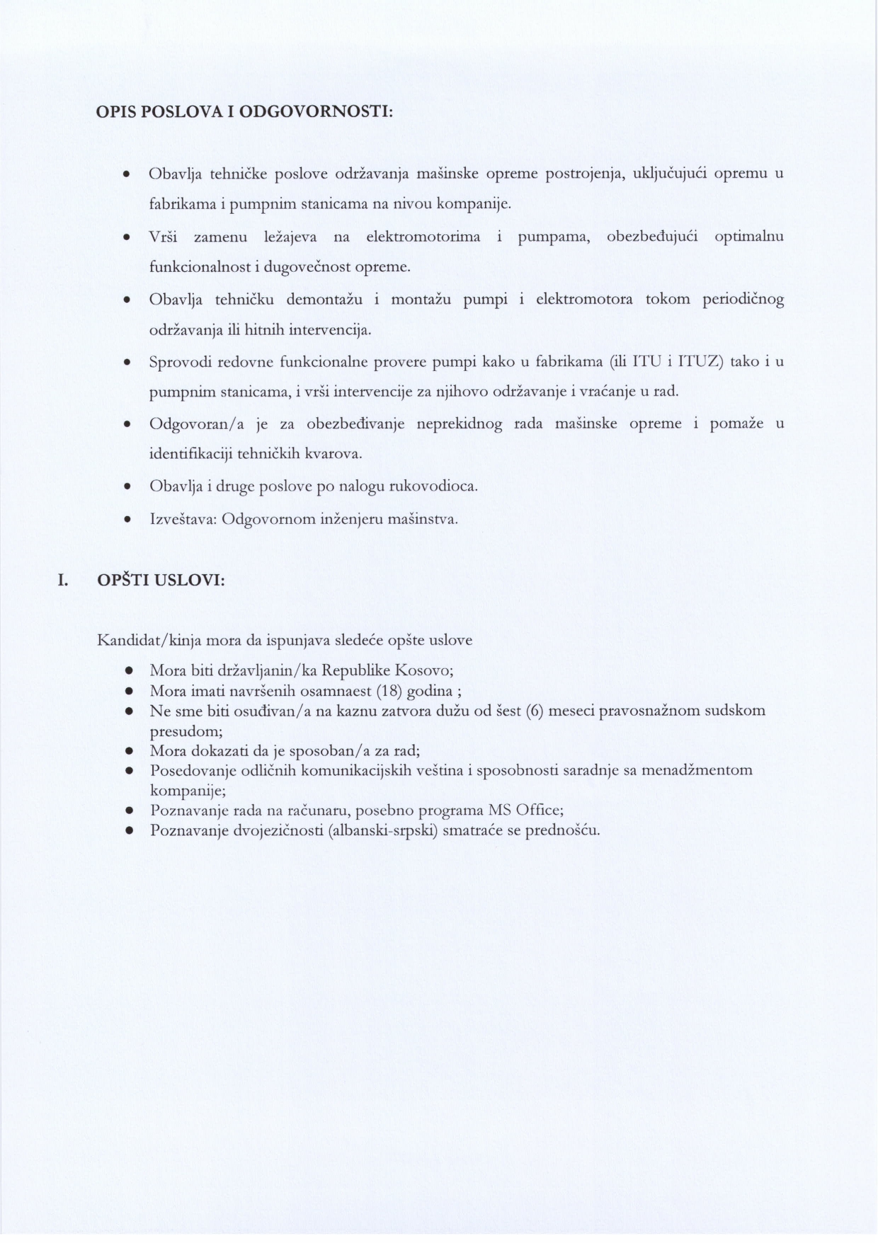 Inxhinier/e përgjegjës/e - Hidrotekni...