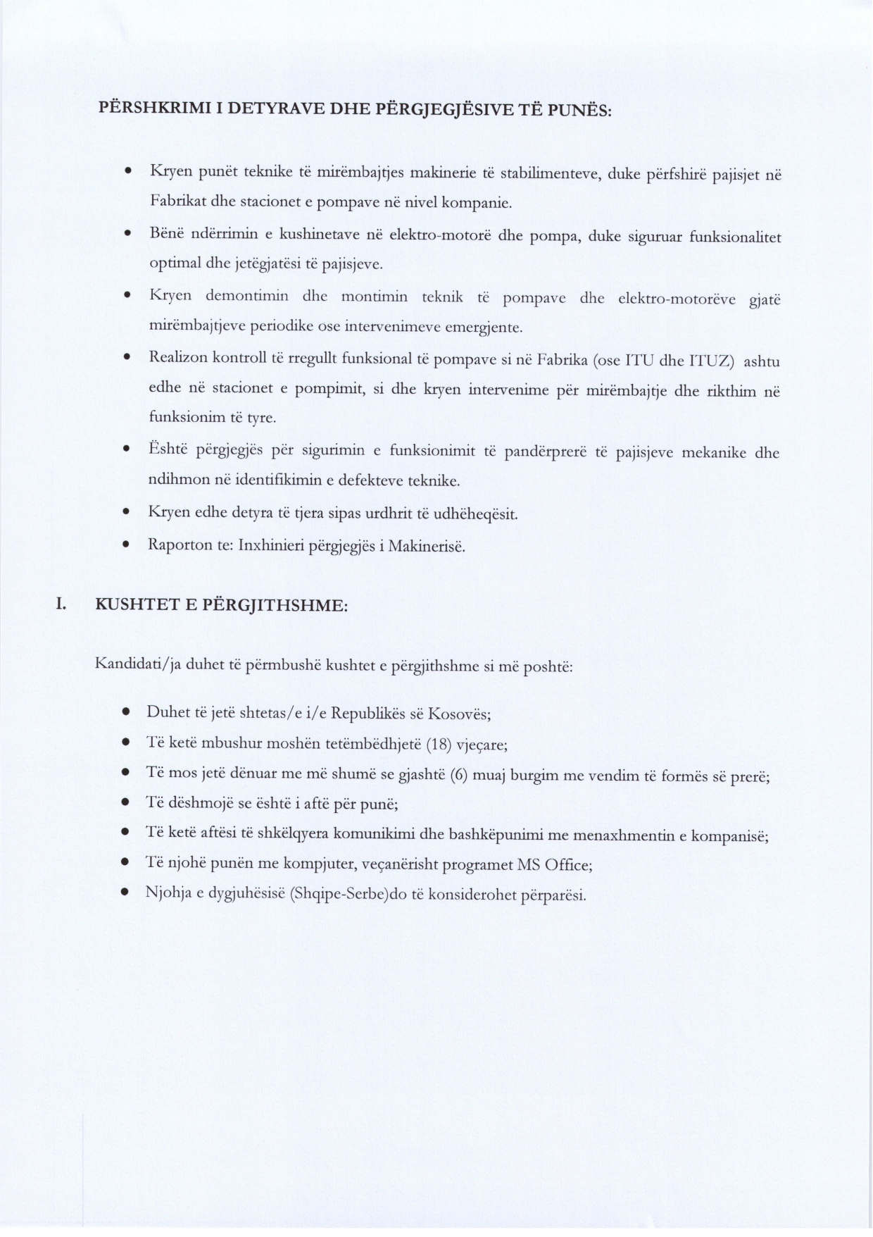 Shef/e i/e mirëmbajtjes së rrjetit të...