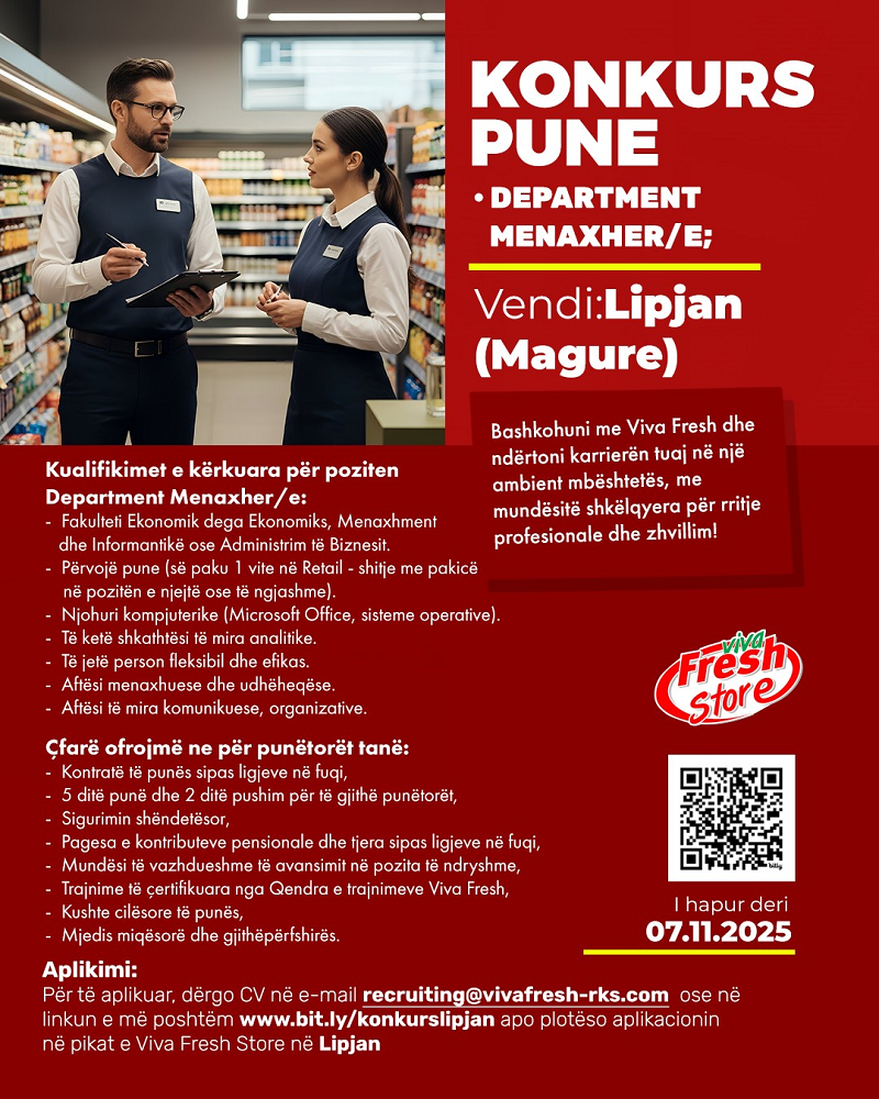 Department Menaxher/e - Lipjan (Magure)