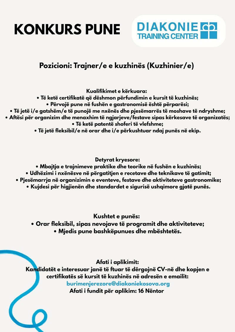 Trajner/e i/e kuzhinës (Kuzhinier/e)