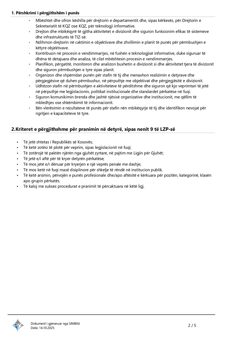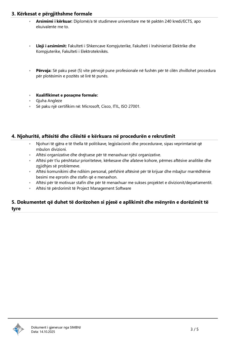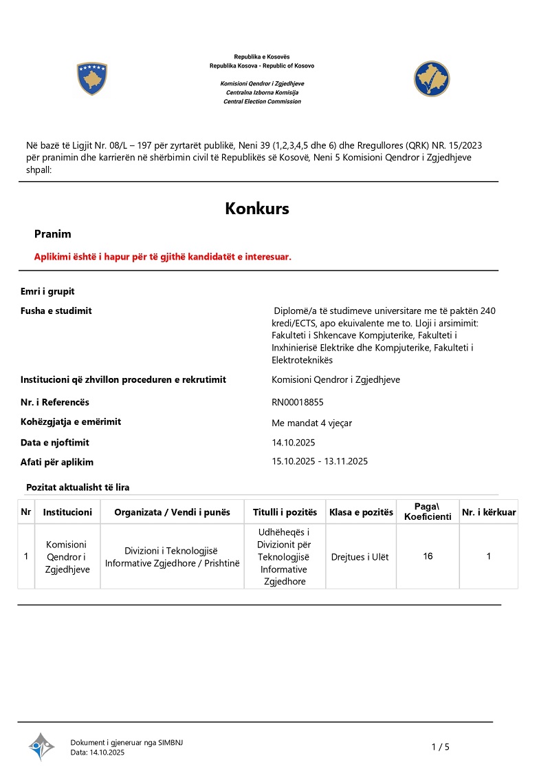 Udhëheqës i Divizionit për Teknologjinë Informative Zgjedhore