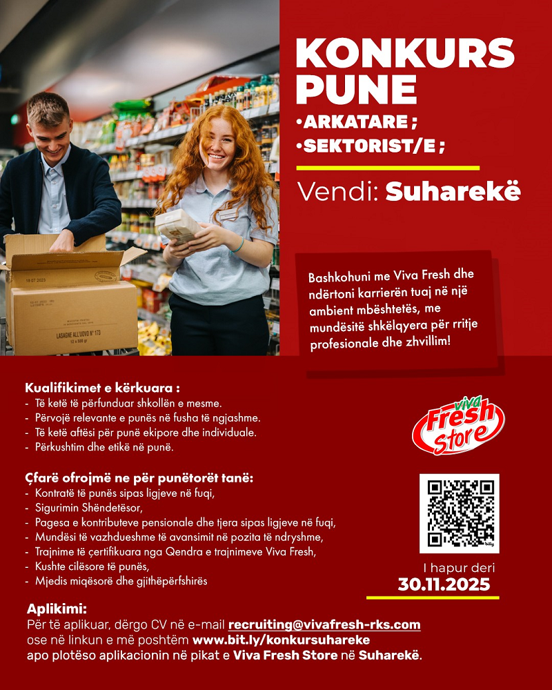 Linku per aplikim: https://vivafresh-rks.com/aplikimet/apliko-per-pune-ne-suhareke/