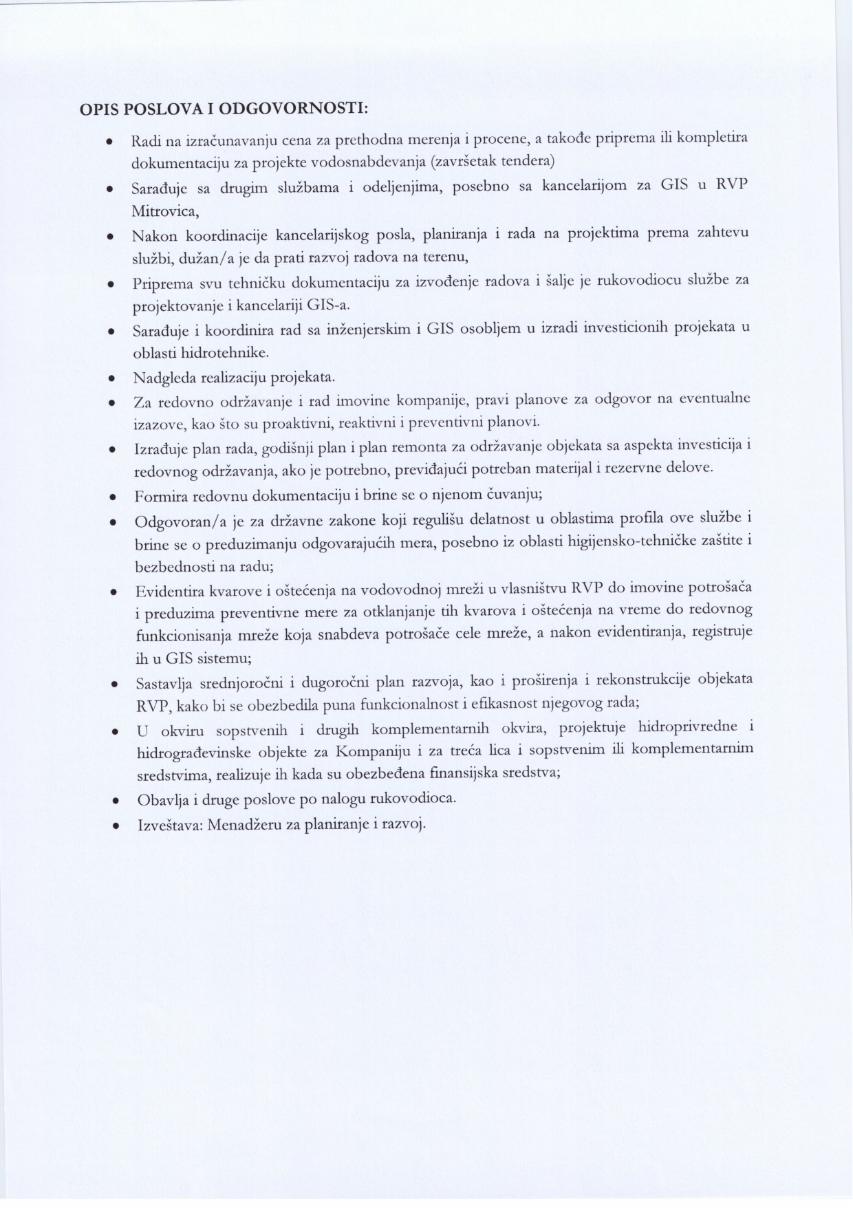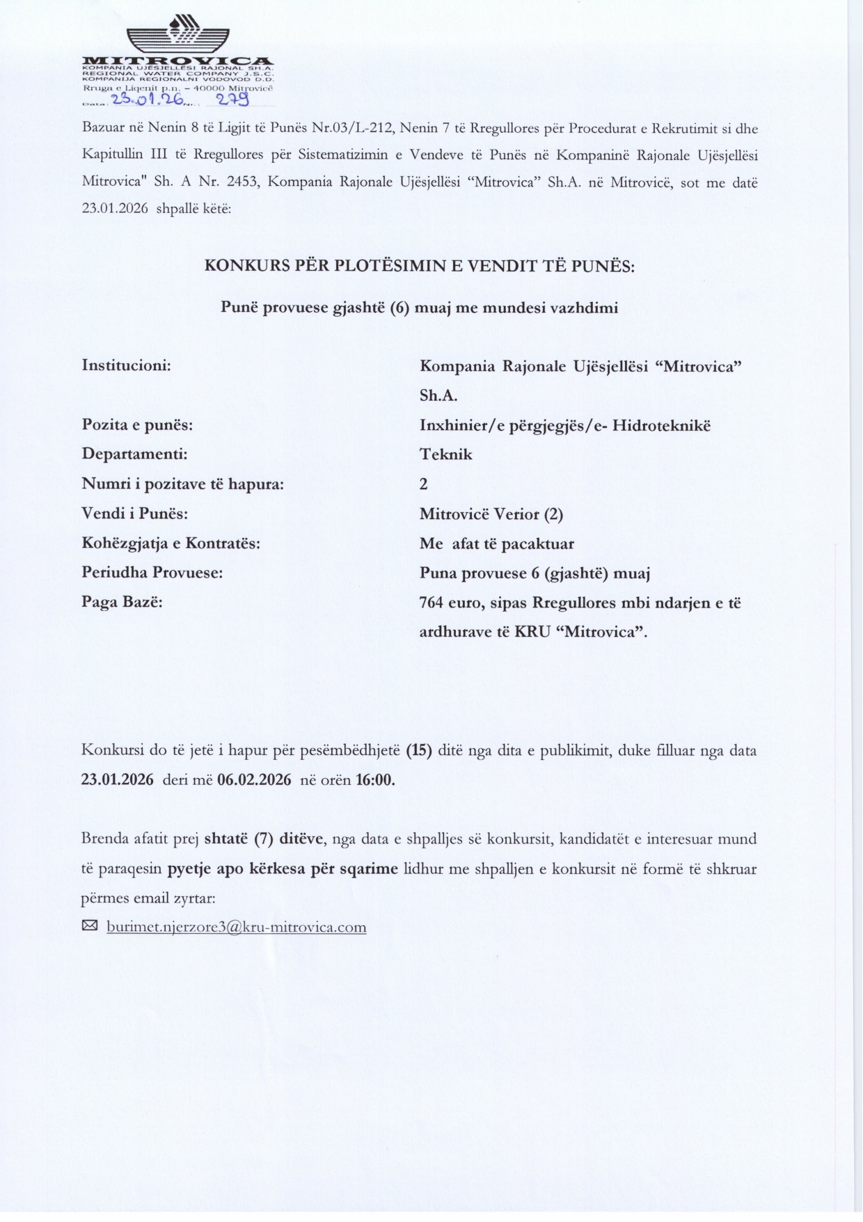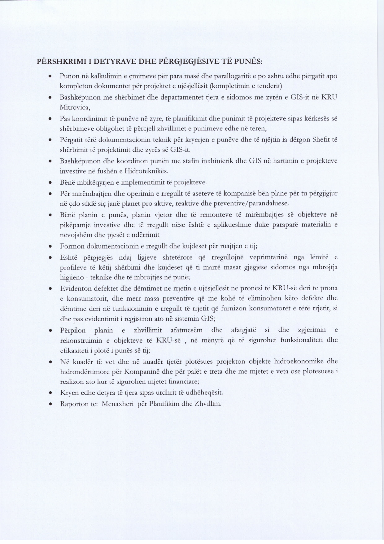 Inxhinier/e përgjegjës/e - Hidrotekni...