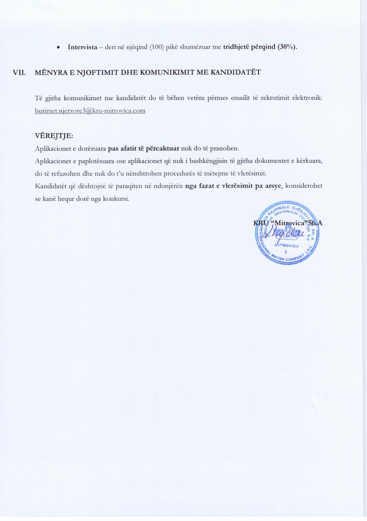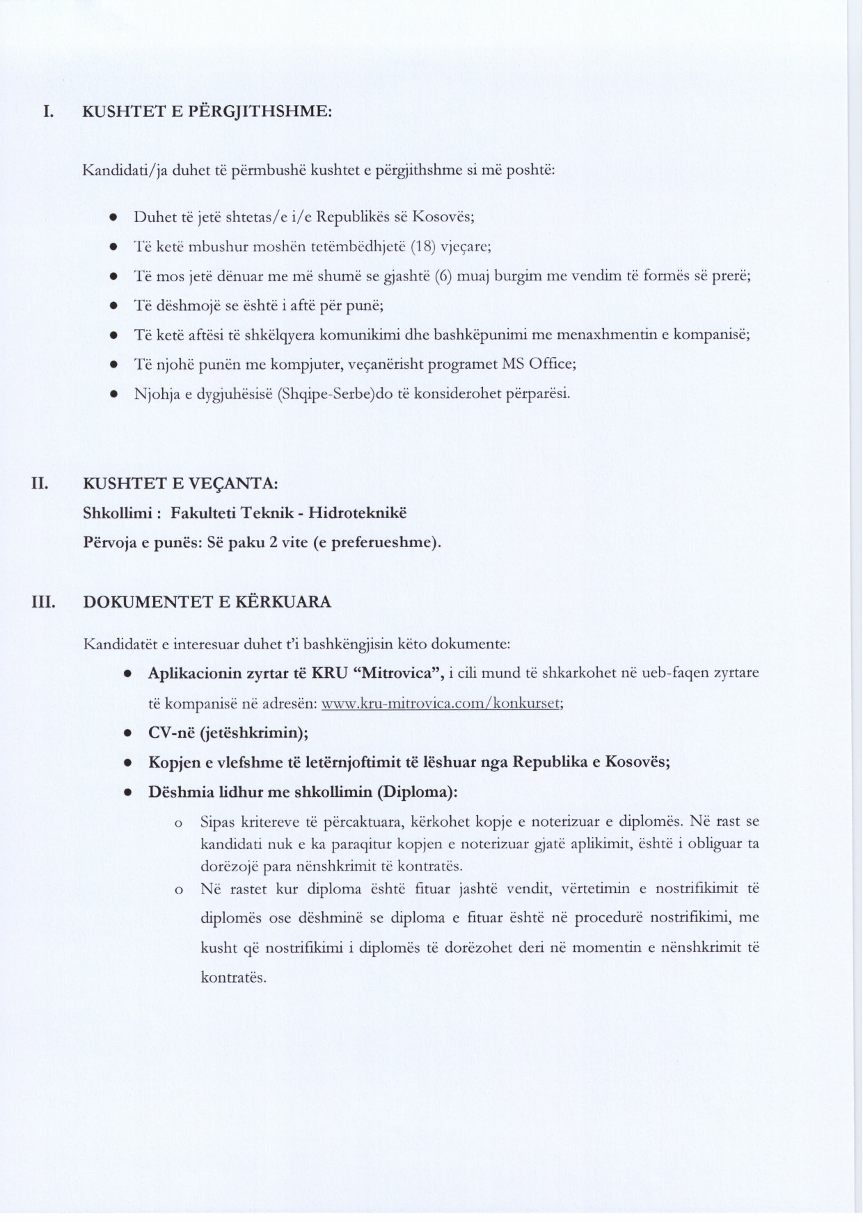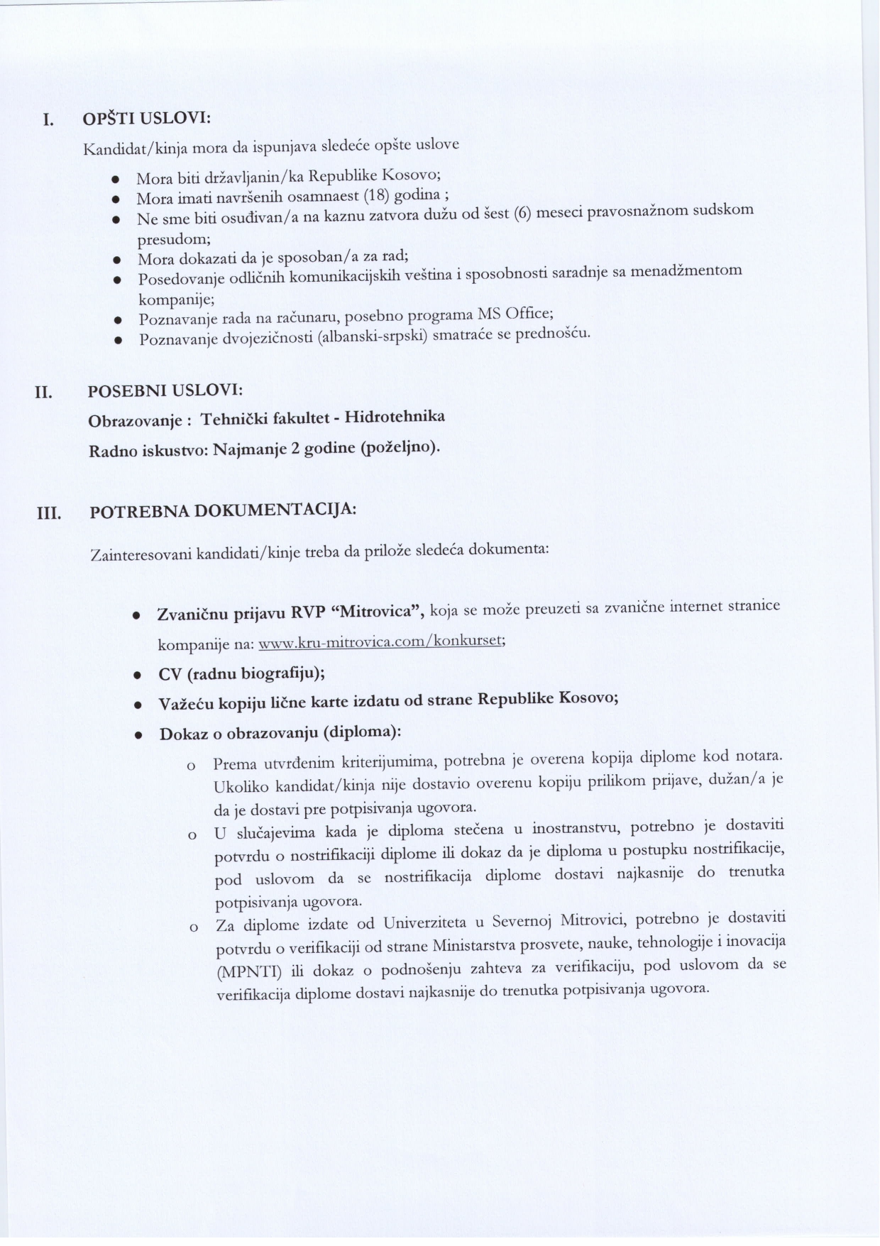 Inxhinier/e përgjegjës/e - Hidrotekni...