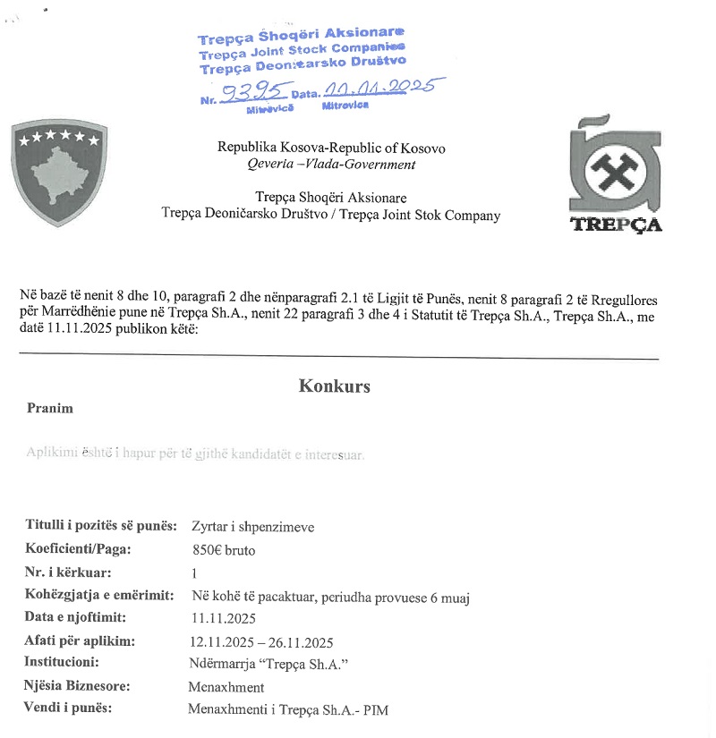 Linku per aplikim: https://trepcasha.com/index.php?page=announcements