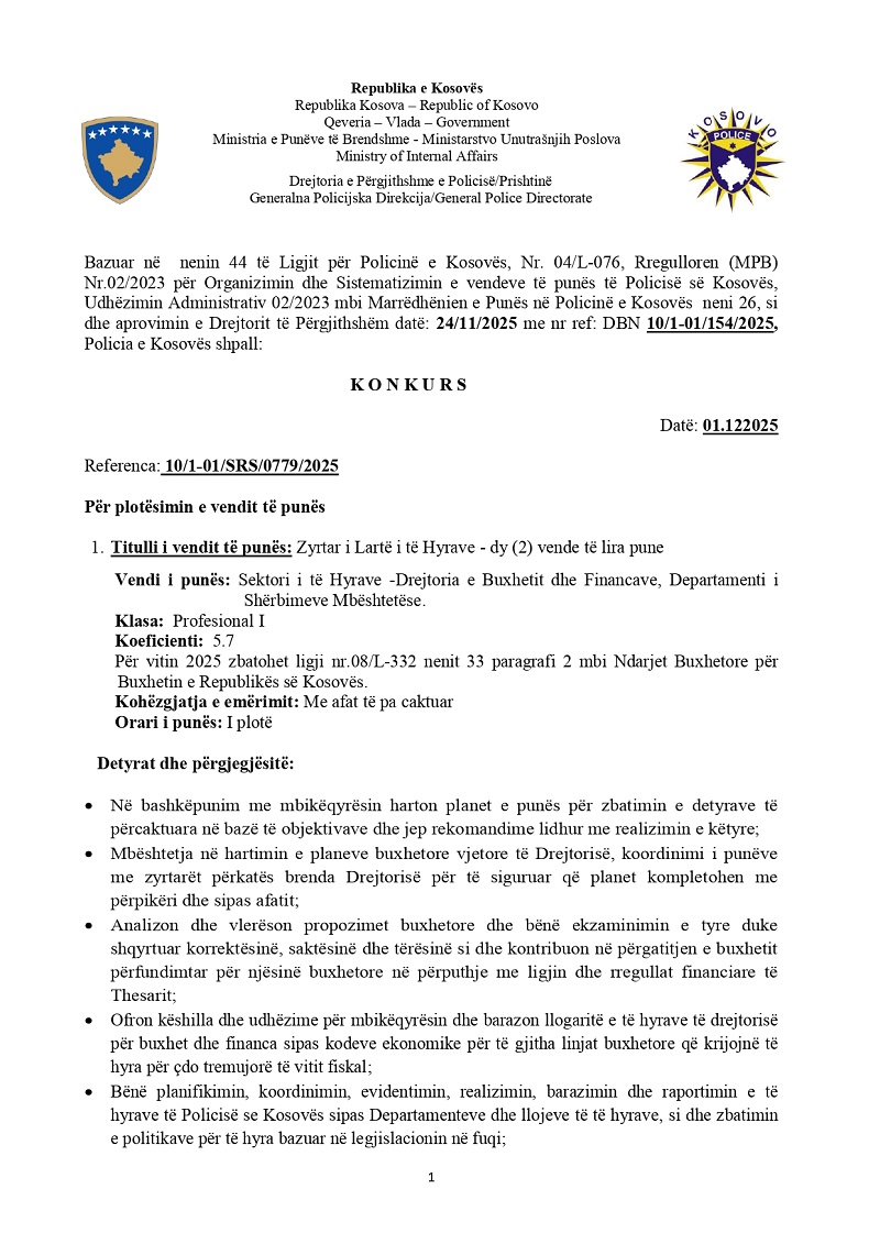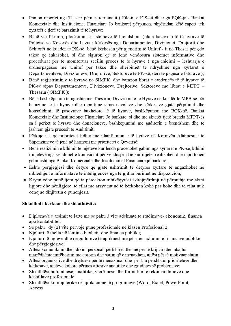 Udhëheqës i Divizionit për Buxhet dhe...