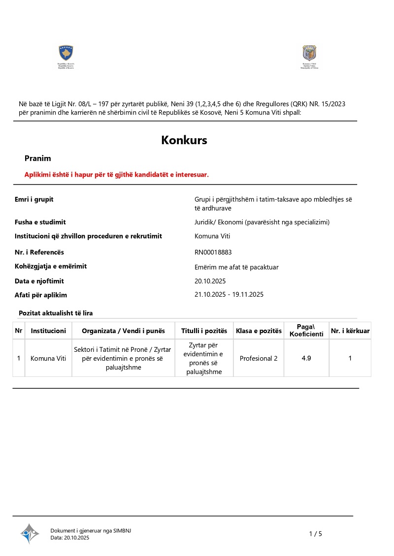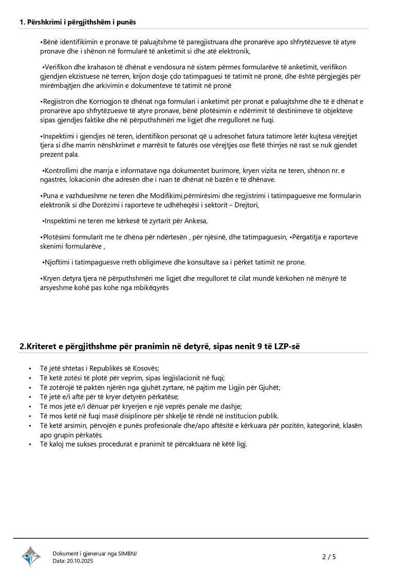 Zyrtar për evidentimin e pronës së pa...