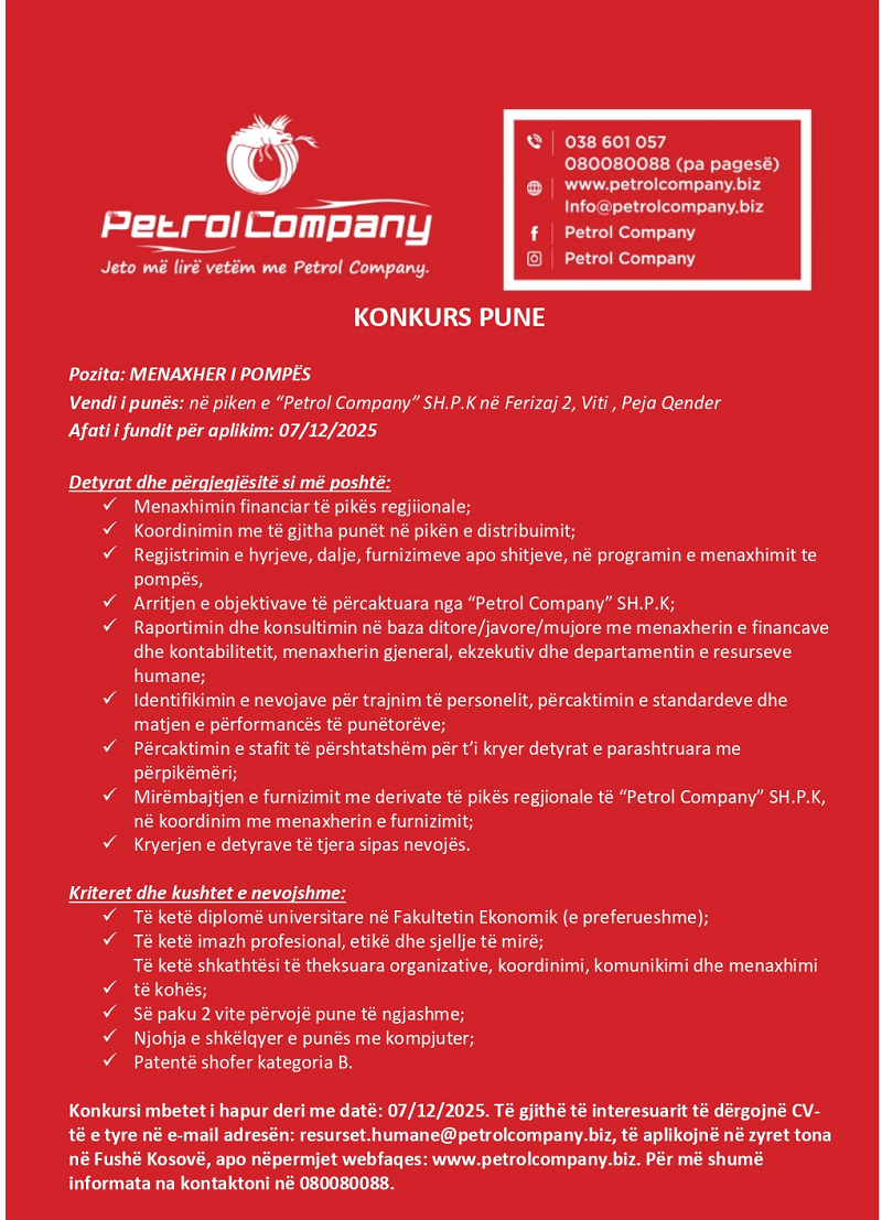 Department Menaxher/e - Lipjan (...
