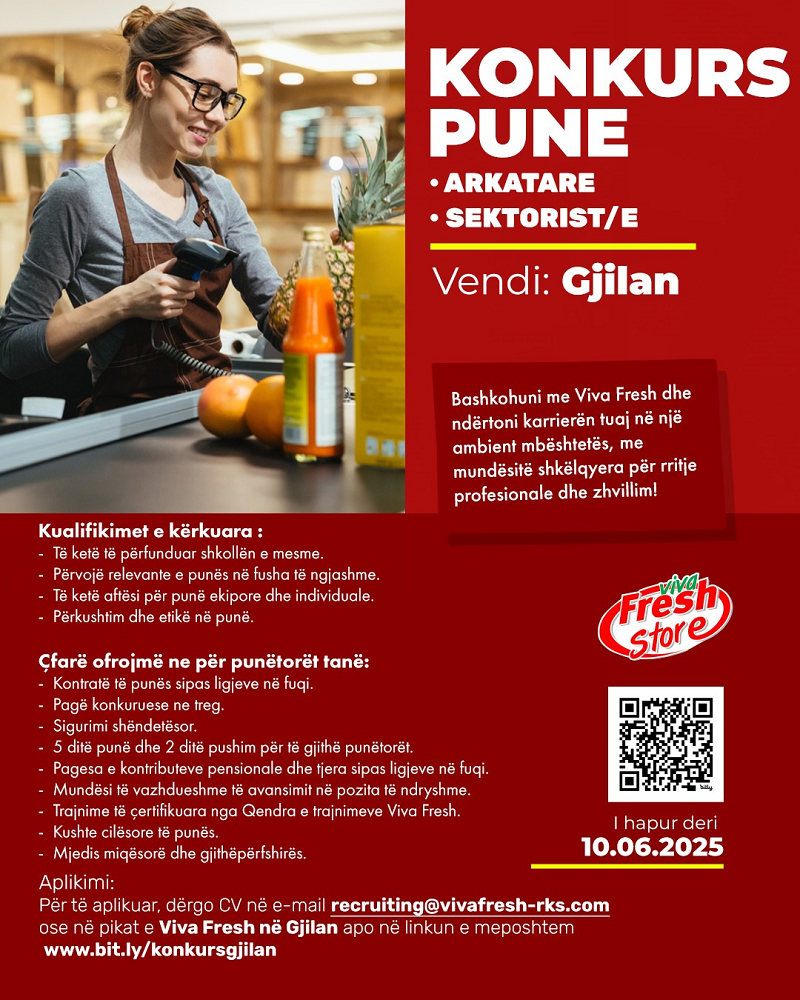 Linku per aplikim: https://vivafresh-rks.com/aplikimet/apliko-per-pune-ne-gjilan/