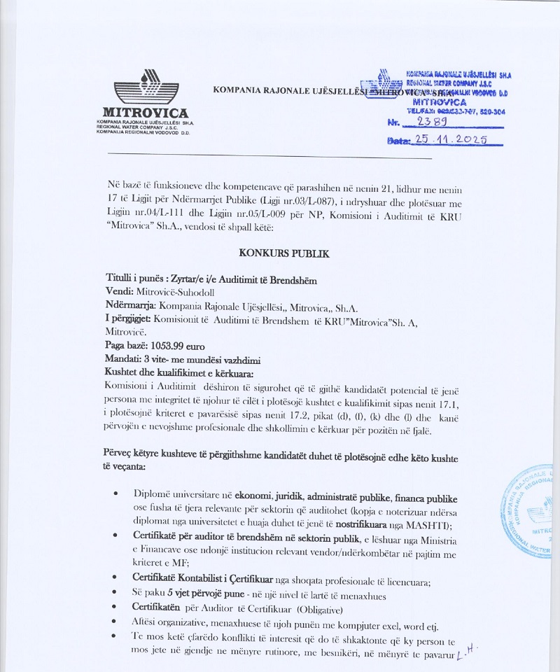 📄 Linku për aplikacionin zyrtar: www.kru-mitrovica.com/konkurset📧 Emaili për aplikim: [email protected]