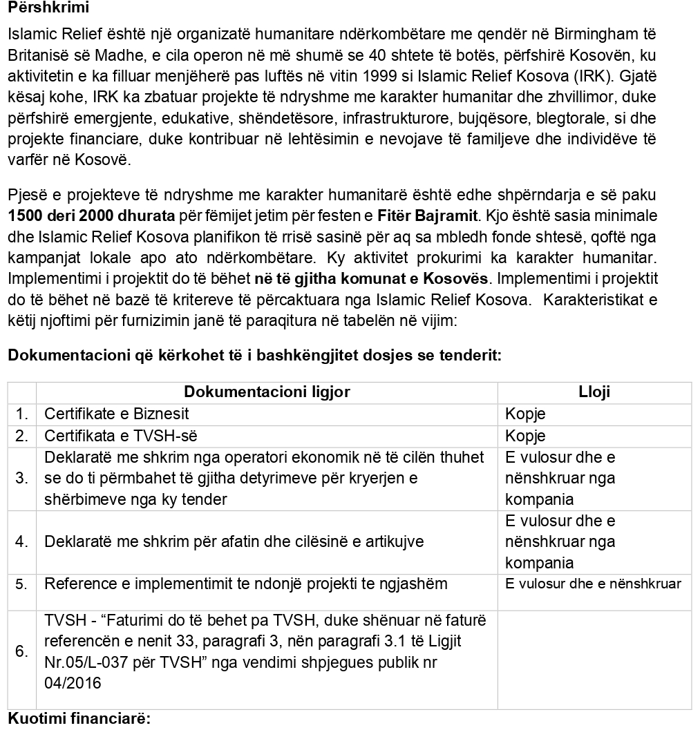 | Personi kontaktues: Zyra e Prokurimit - IR Kosova | Telefoni: 038/232-431 Mobil:+383 44 239 349 Email: [email protected] | |