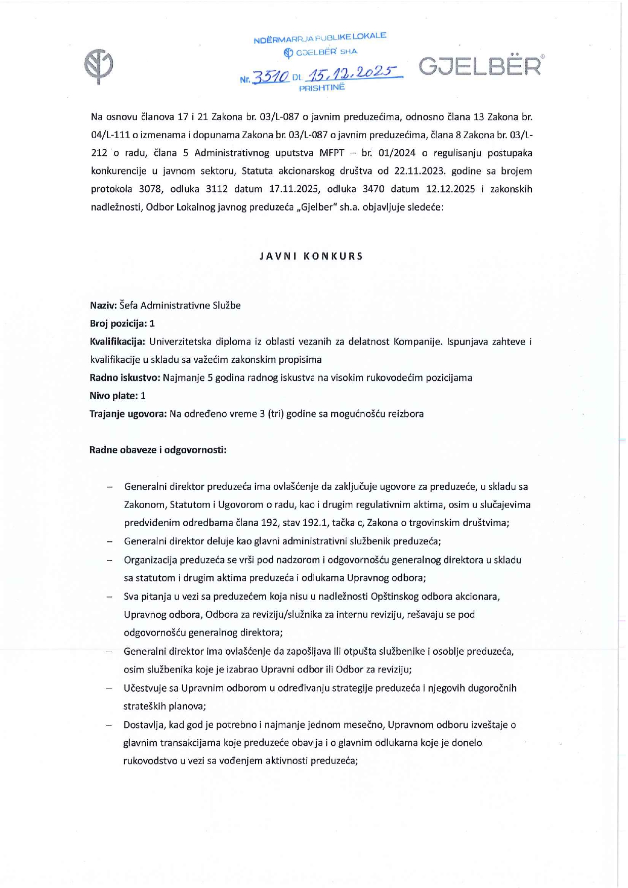 Shpall konkurs