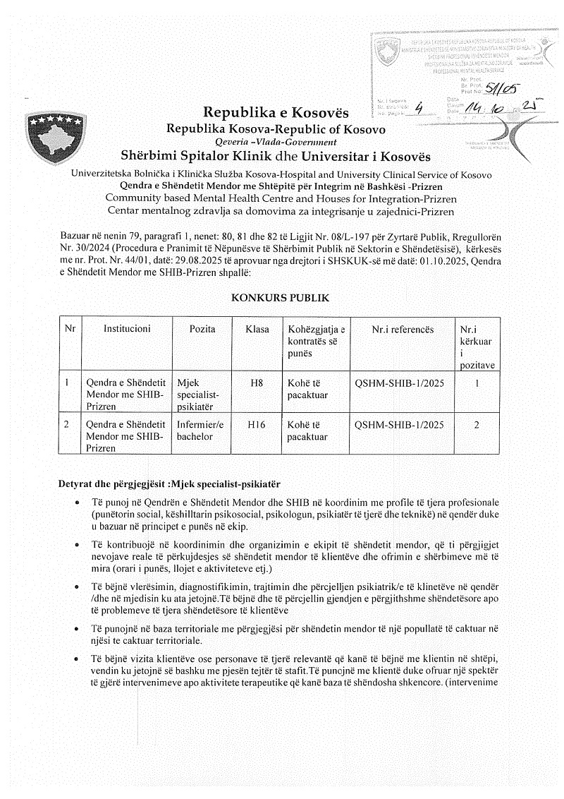 Mjek specialist - psikiatër, Infermier/e bachelor