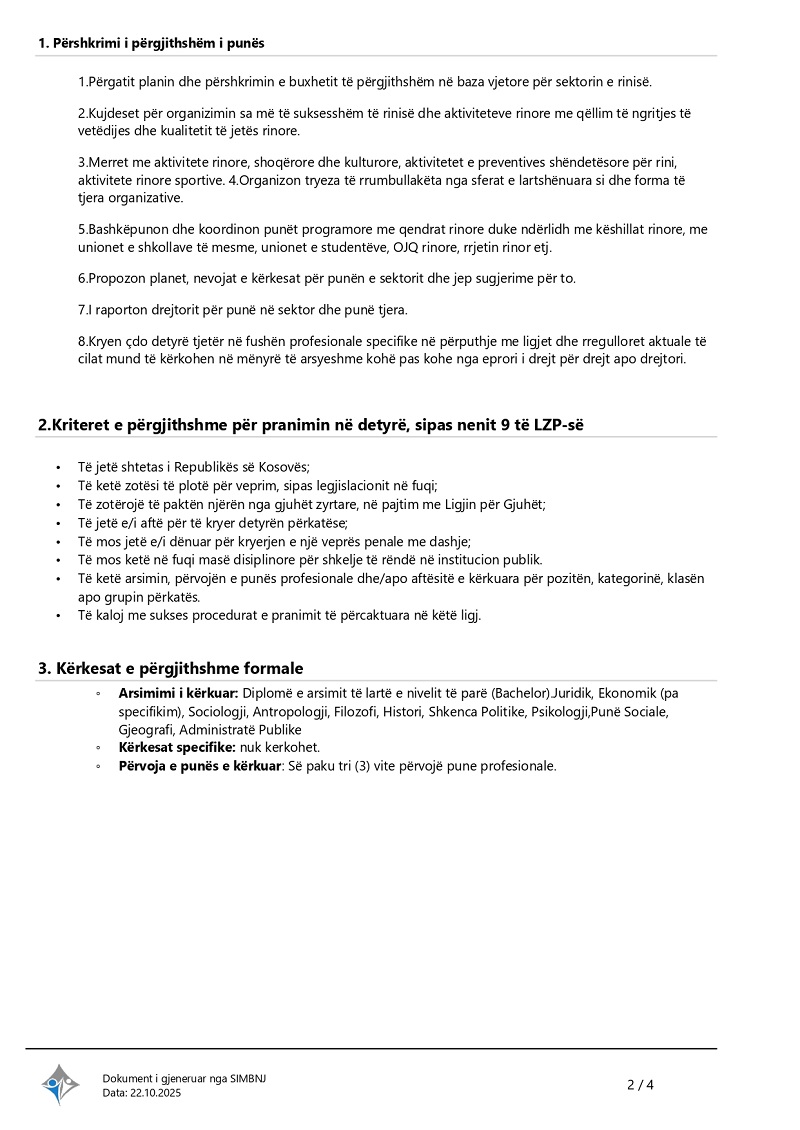 Udhëheqës i sektorit për rini