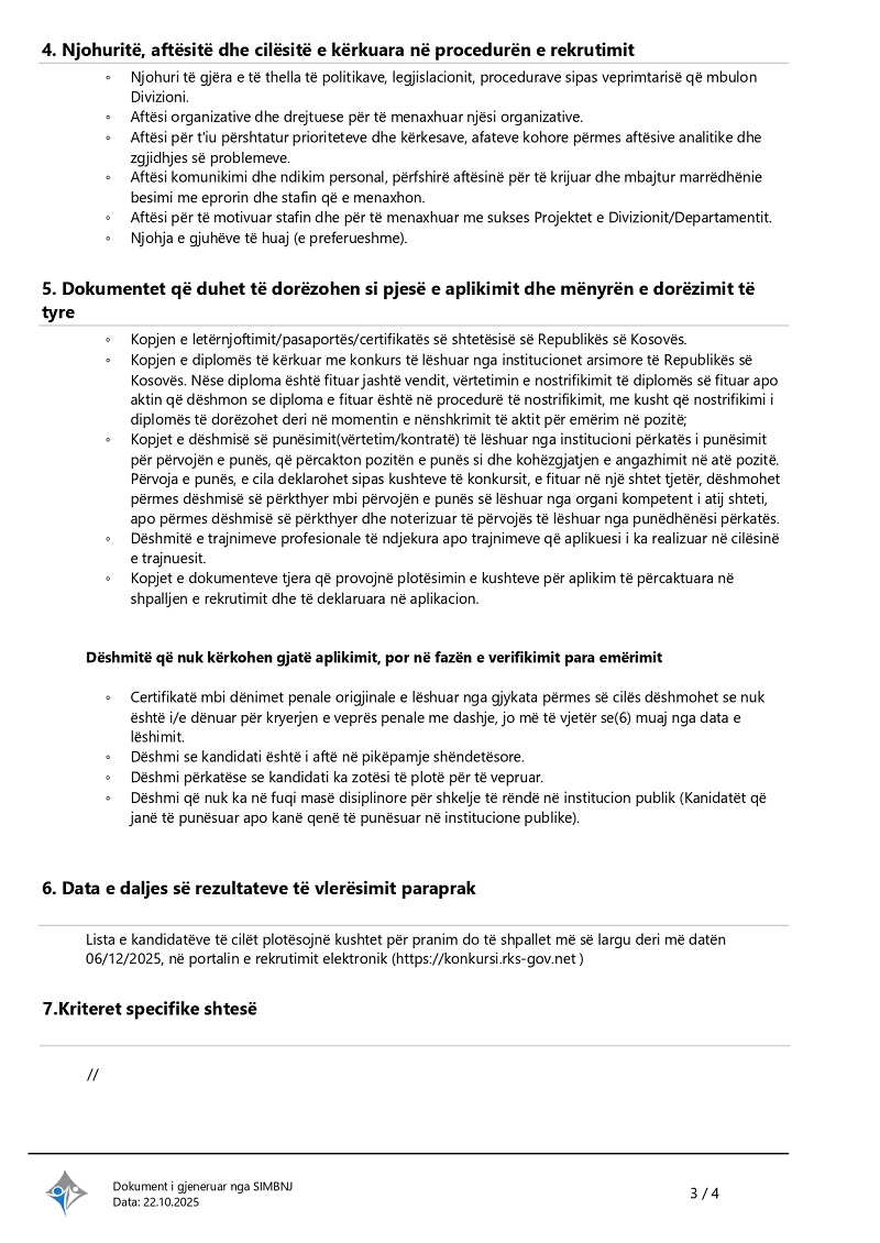 Udhëheqës i Sektorit të Arkivit