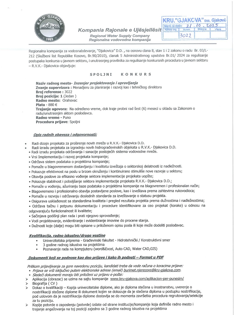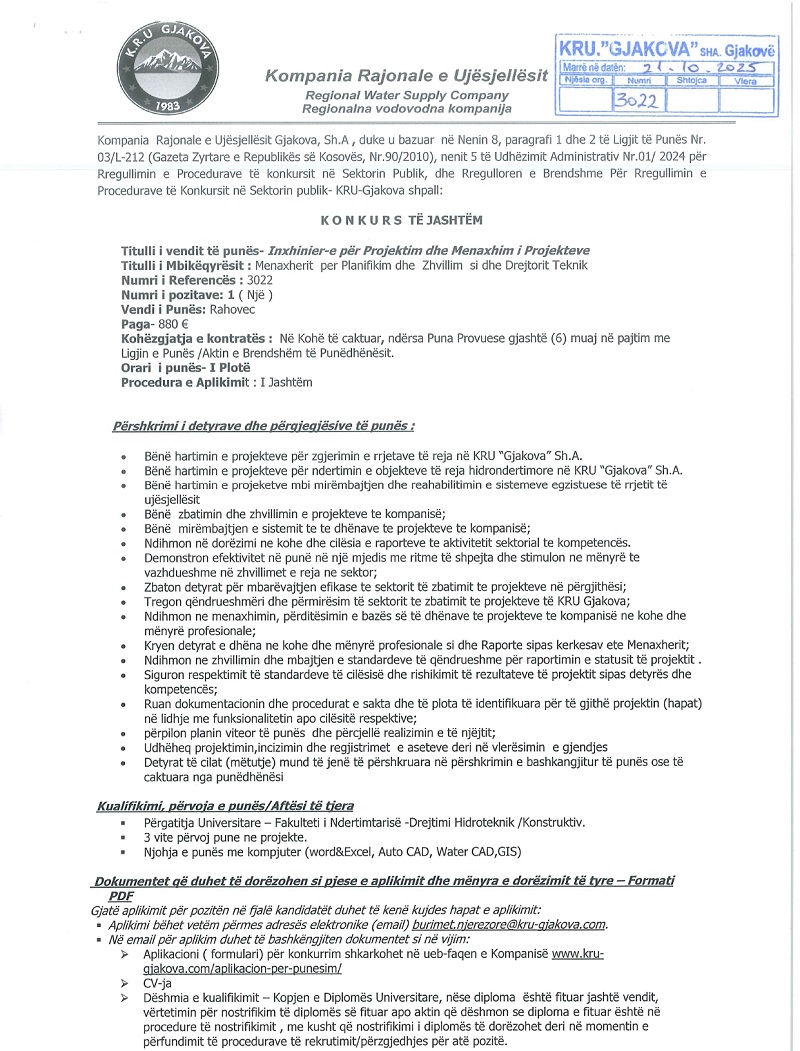 Njoftim i tenderit: Ndërtimi i Ujësje...