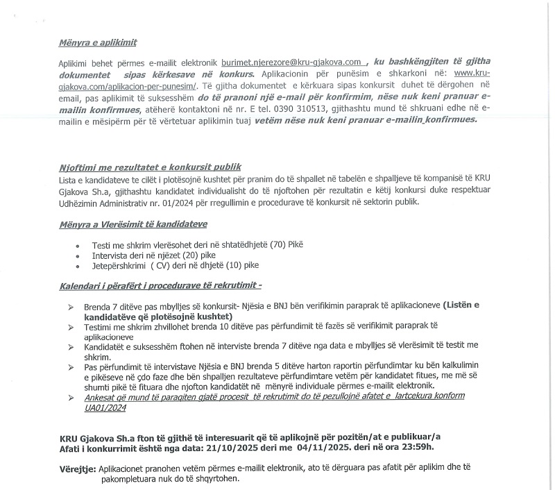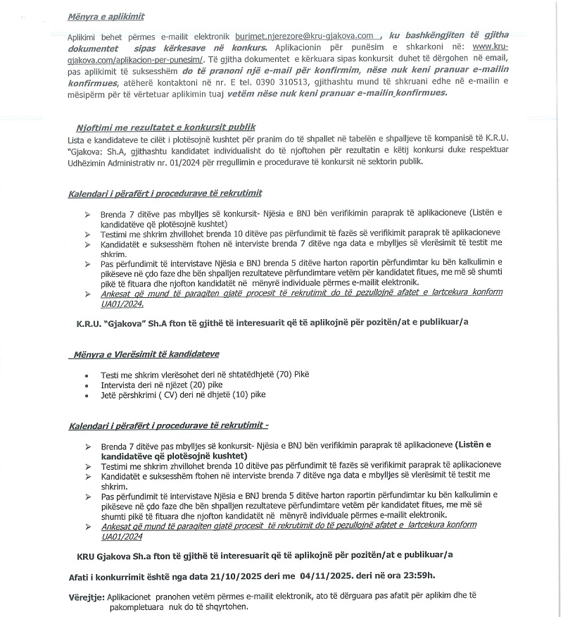Kërkesë për ofertë: Shërbime të përkt...