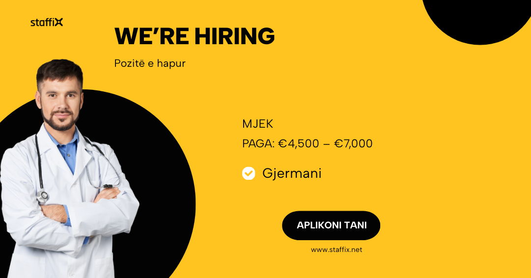 staffiX është kompani e specializuar në fushën e rekrutimit dhe përzgjedhjes së stafit. Për nevojat e klientit tonë, që operon në sektorin shëndetësor në Gjermani, jemi në kërkim të kandidatëve të motivuar për pozitën Mjek. Kandidati ose kandidatja do të ketë një rol të rëndësishëm në ofrimin e shërbimeve shëndetësore cilësore, kujdesin ndaj pacientëve dhe bashkëpunimin me ekipin mjekësor, duke kontribuar drejtpërdrejt në standardet dhe funksionimin e institucionit shëndetësor.