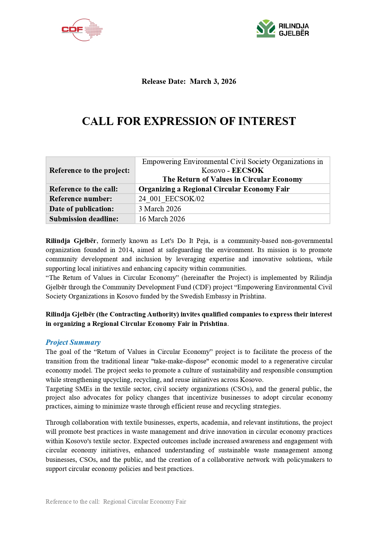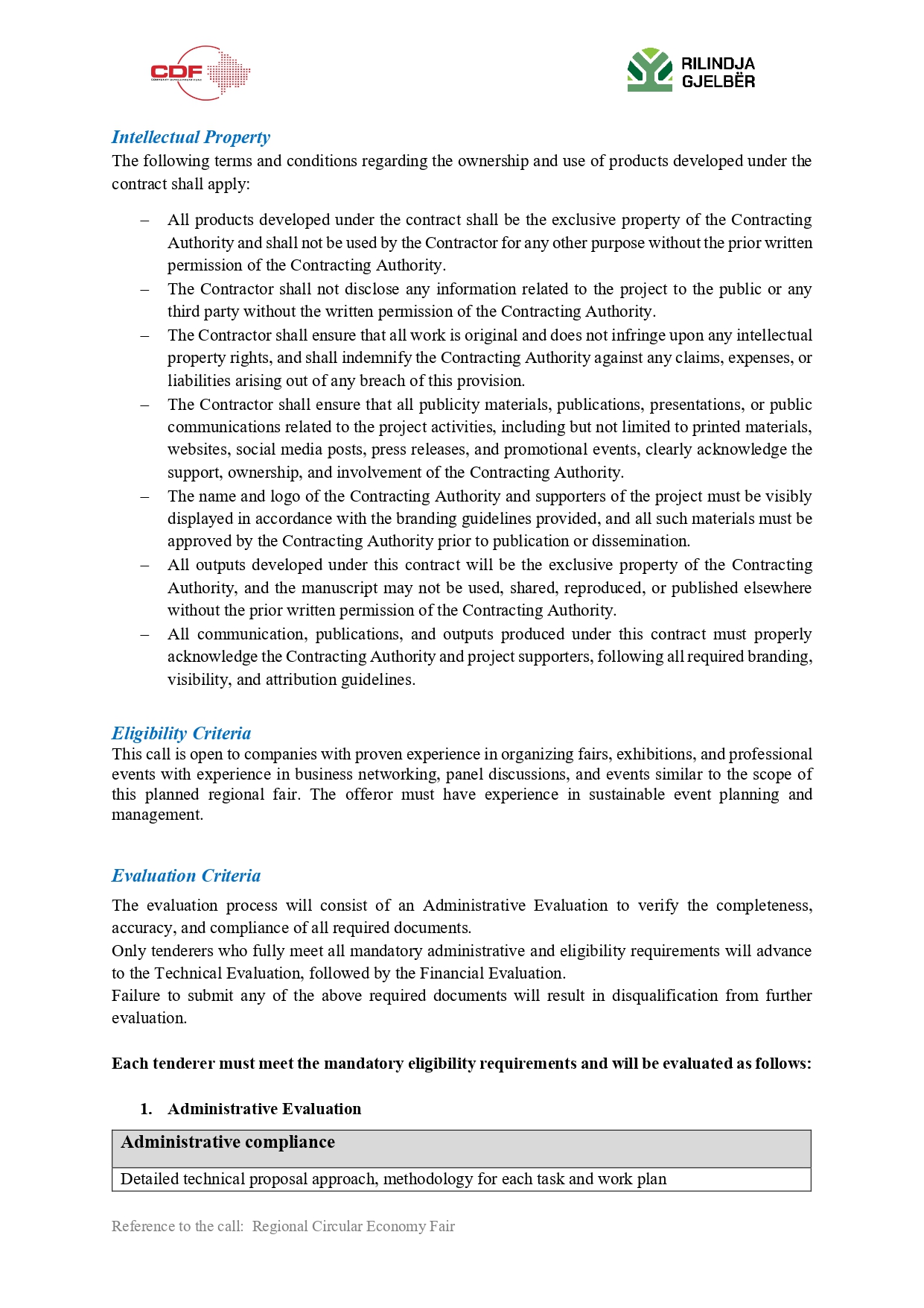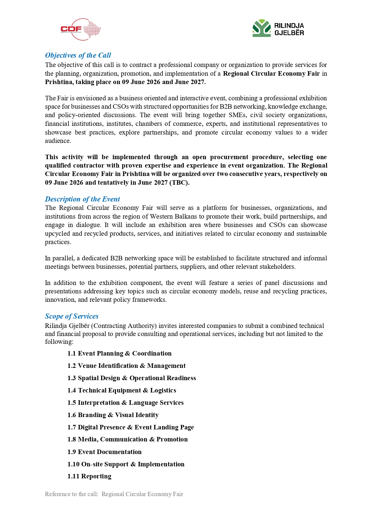 Rilindja Gjelbër (RGJ) reserves the right to accept or reject any proposal and to annul the solicitation process at any time, without incurring any liability to the affected bidders.