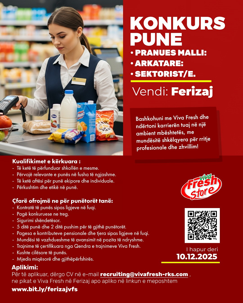 Linku per aplikim: https://vivafresh-rks.com/aplikimet/apliko-per-pune-ne-ferizaj/