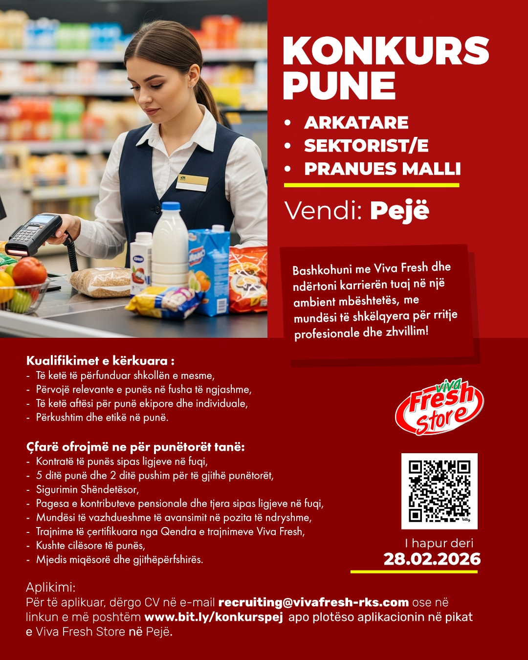 Linku per aplikim online: https://vivafresh-rks.com/aplikimet/apliko-per-peje-2/