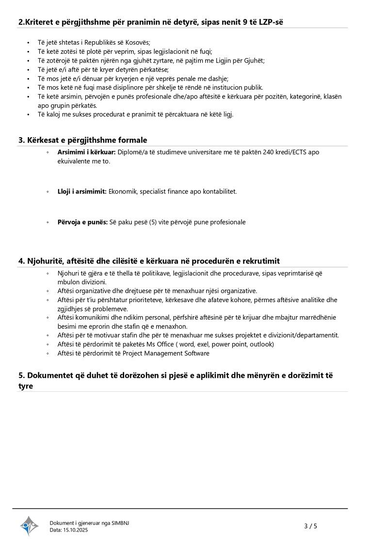 Udhëheqës i Divizionit për Buxhet dhe Financa