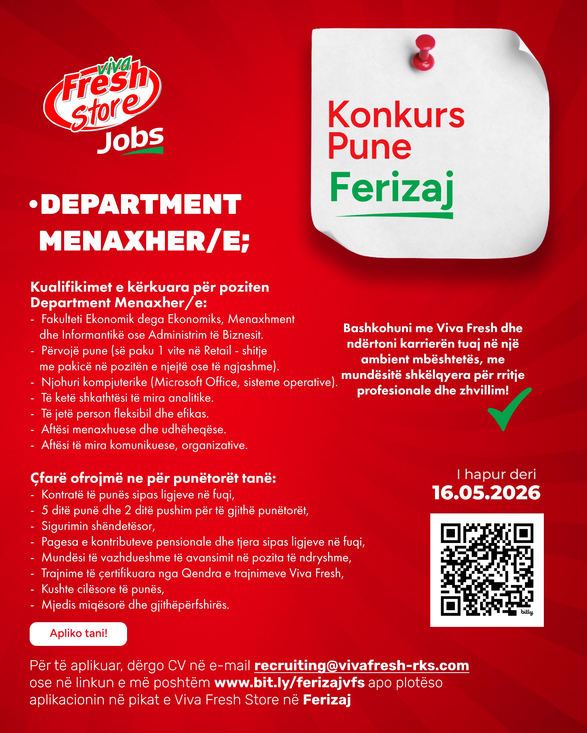 Linku per aplikim: https://vivafresh-rks.com/aplikimet/apliko-per-pune-ne-ferizaj/