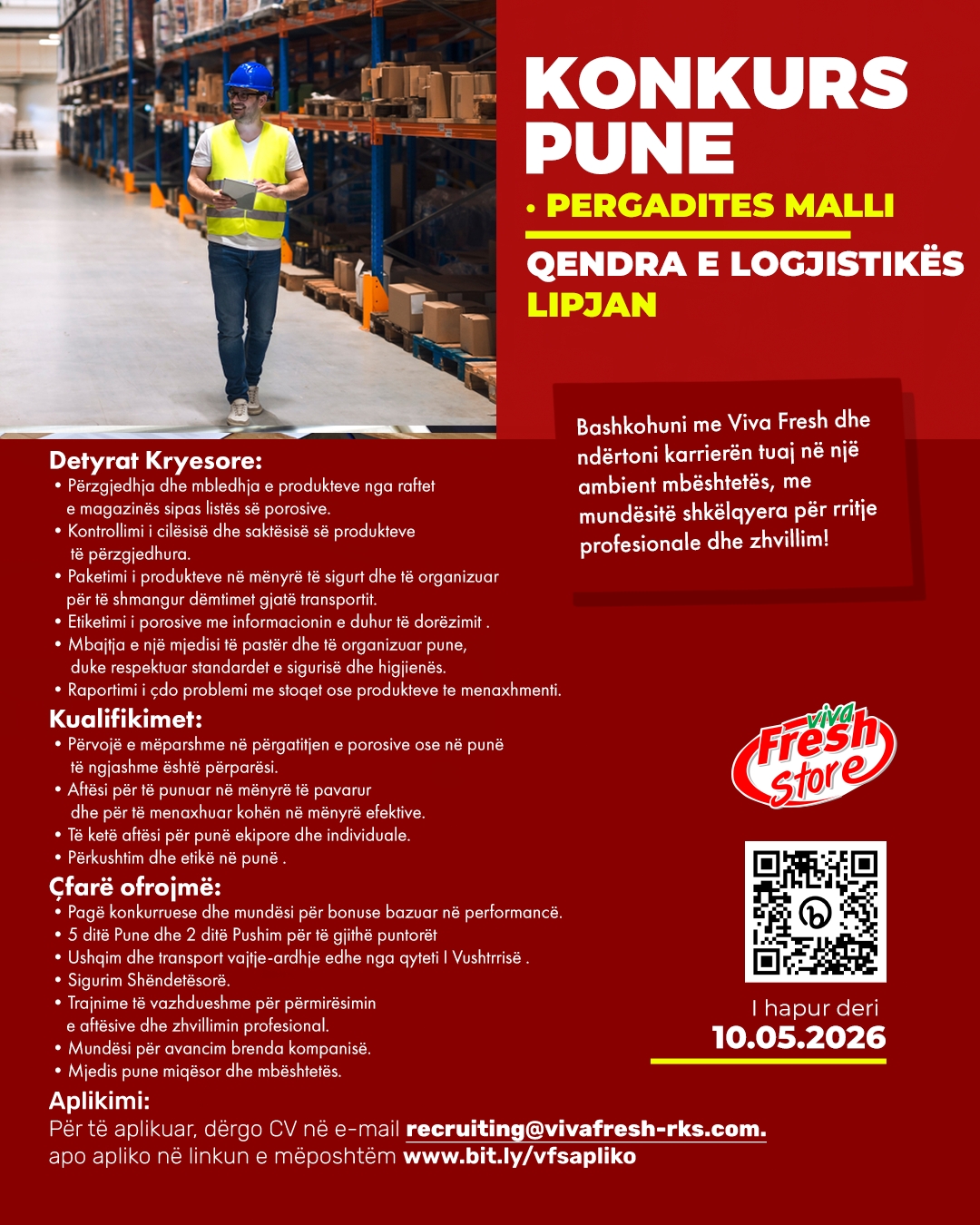 Linku per aplikim: https://vivafresh-rks.com/aplikimet/aplikimi-i-pergjithshem/