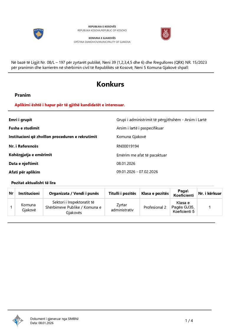 Inxhiner/e i/e Elektrikës - Gjakovë