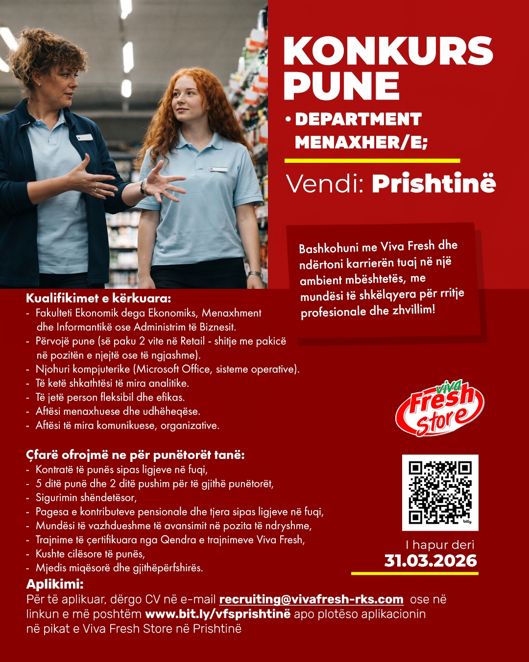 Linku per aplikim: https://vivafresh-rks.com/aplikimet/apliko-per-prishtine/