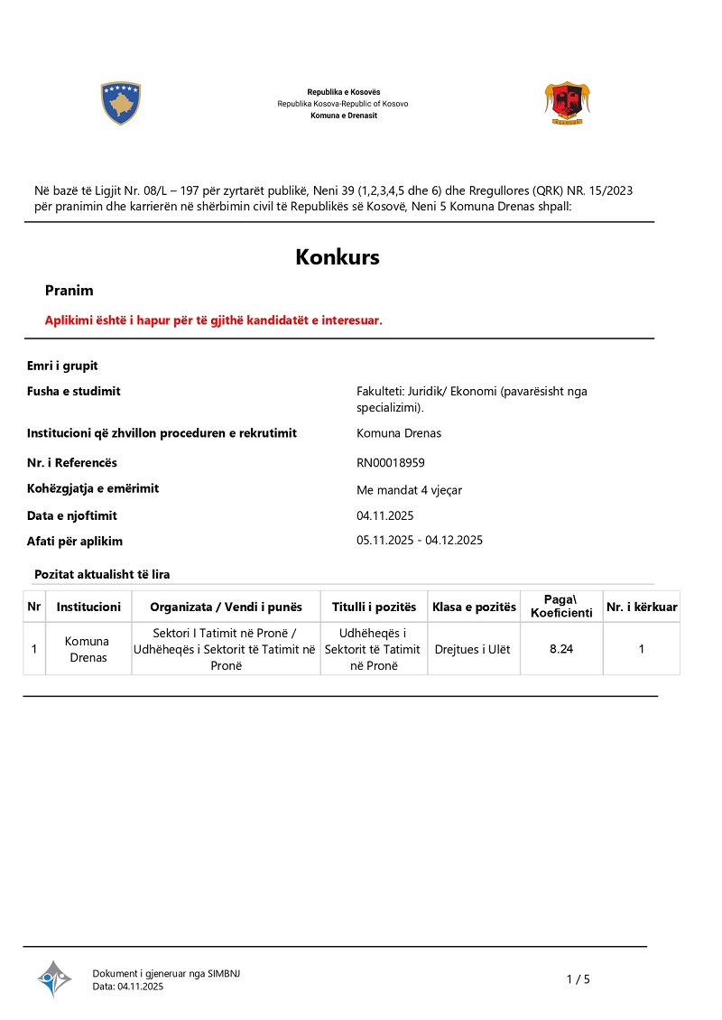 Udhëheqës i Sektorit të Tatimit në Pronë