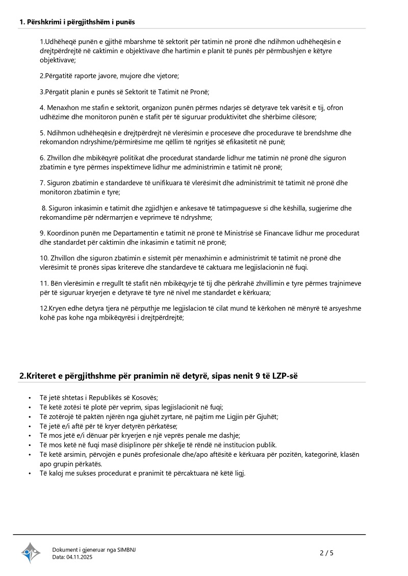 Udhëheqës i Sektorit të Tatimit në Pr...