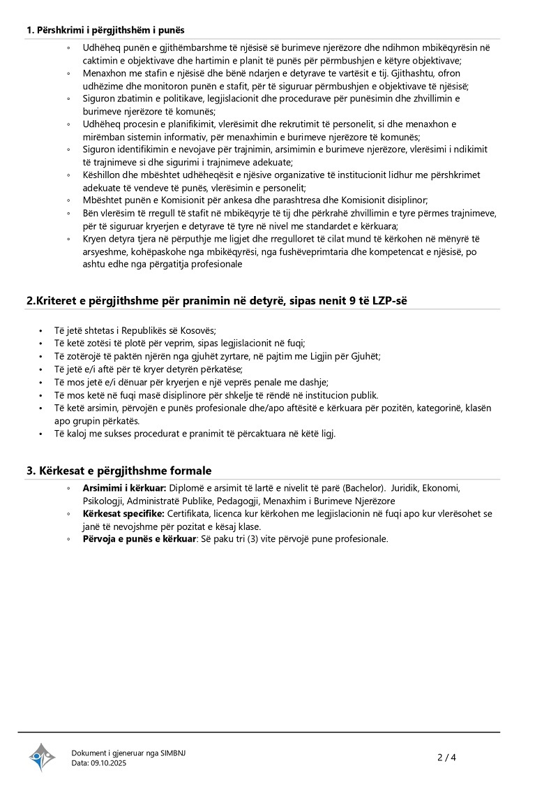 Department Menaxher/e - Suharekë