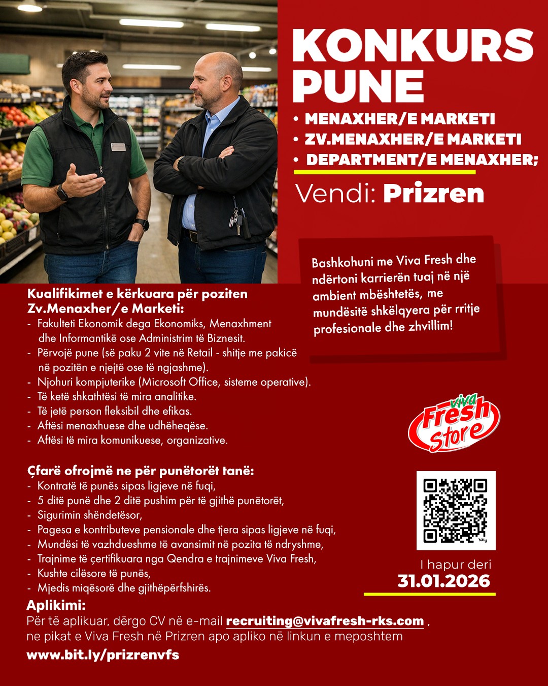 Linku per aplikim: https://vivafresh-rks.com/aplikimet/apliko-per-pune-ne-prizren/