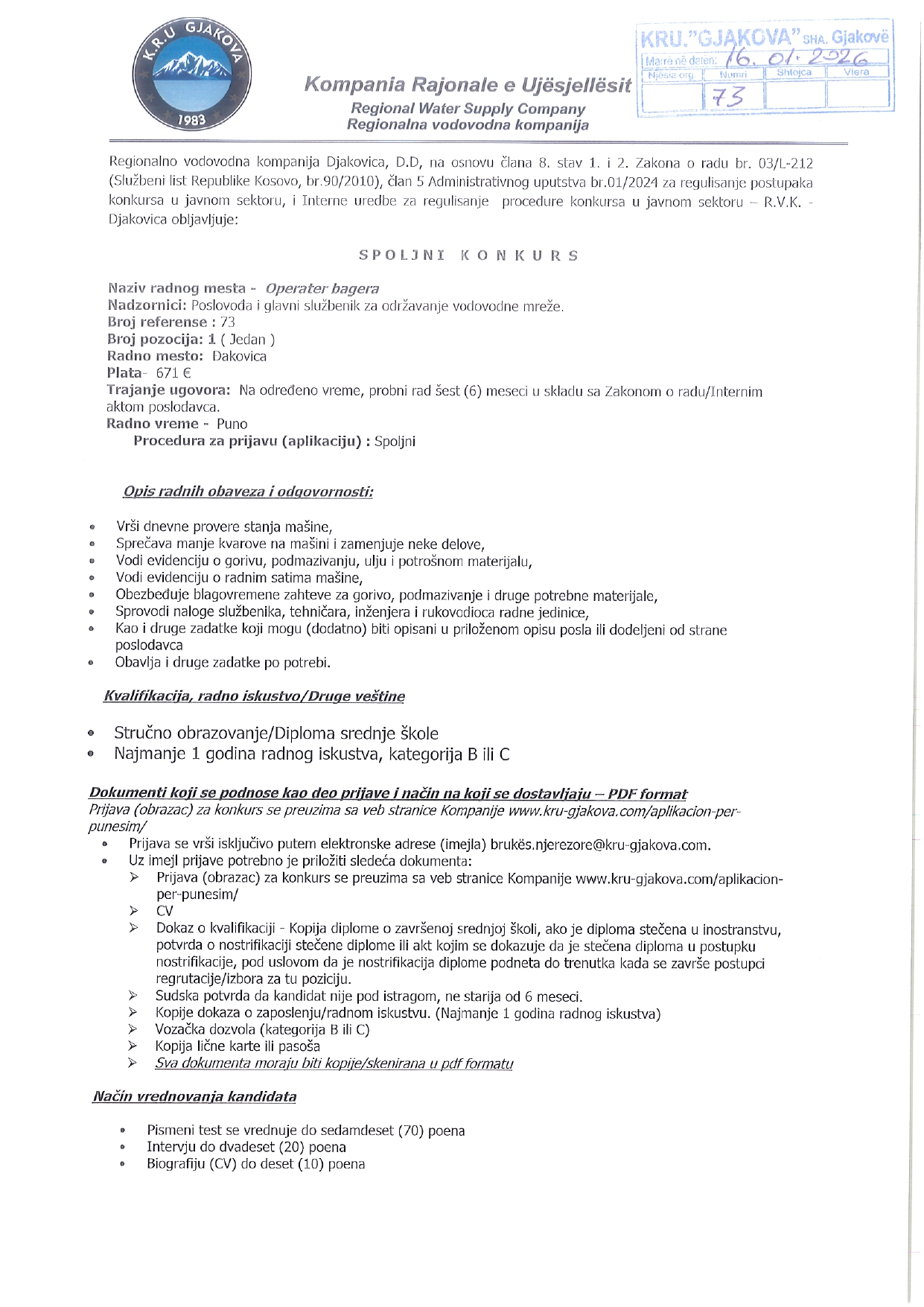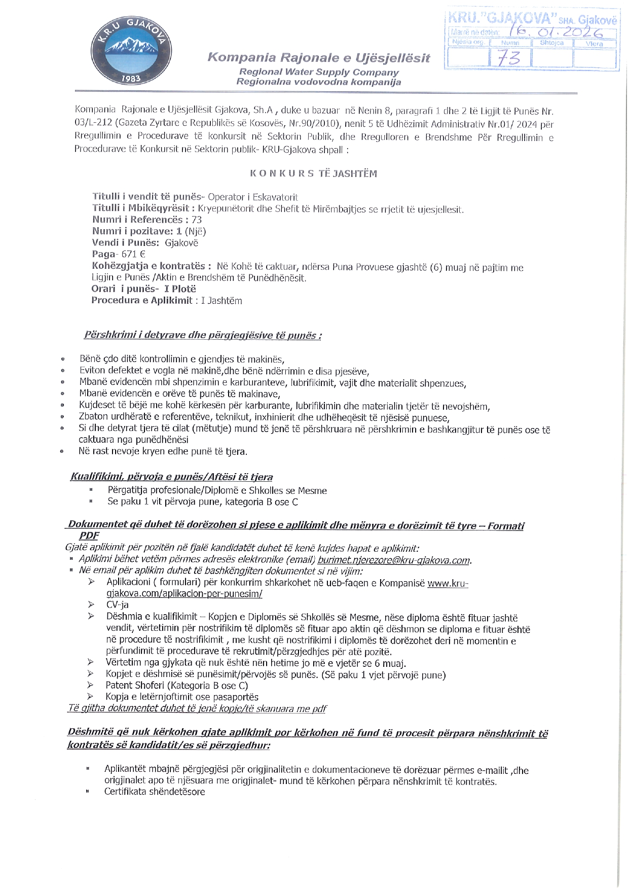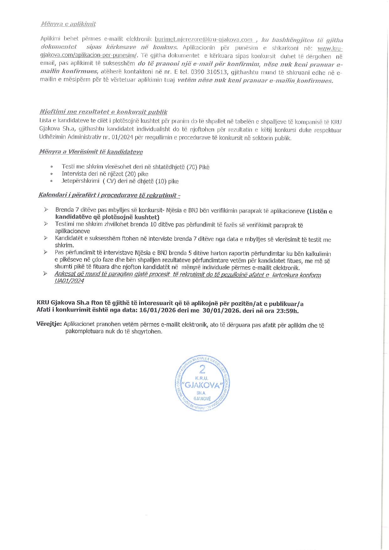 Ekonomist/e (2), Inxhinier/e (2)...